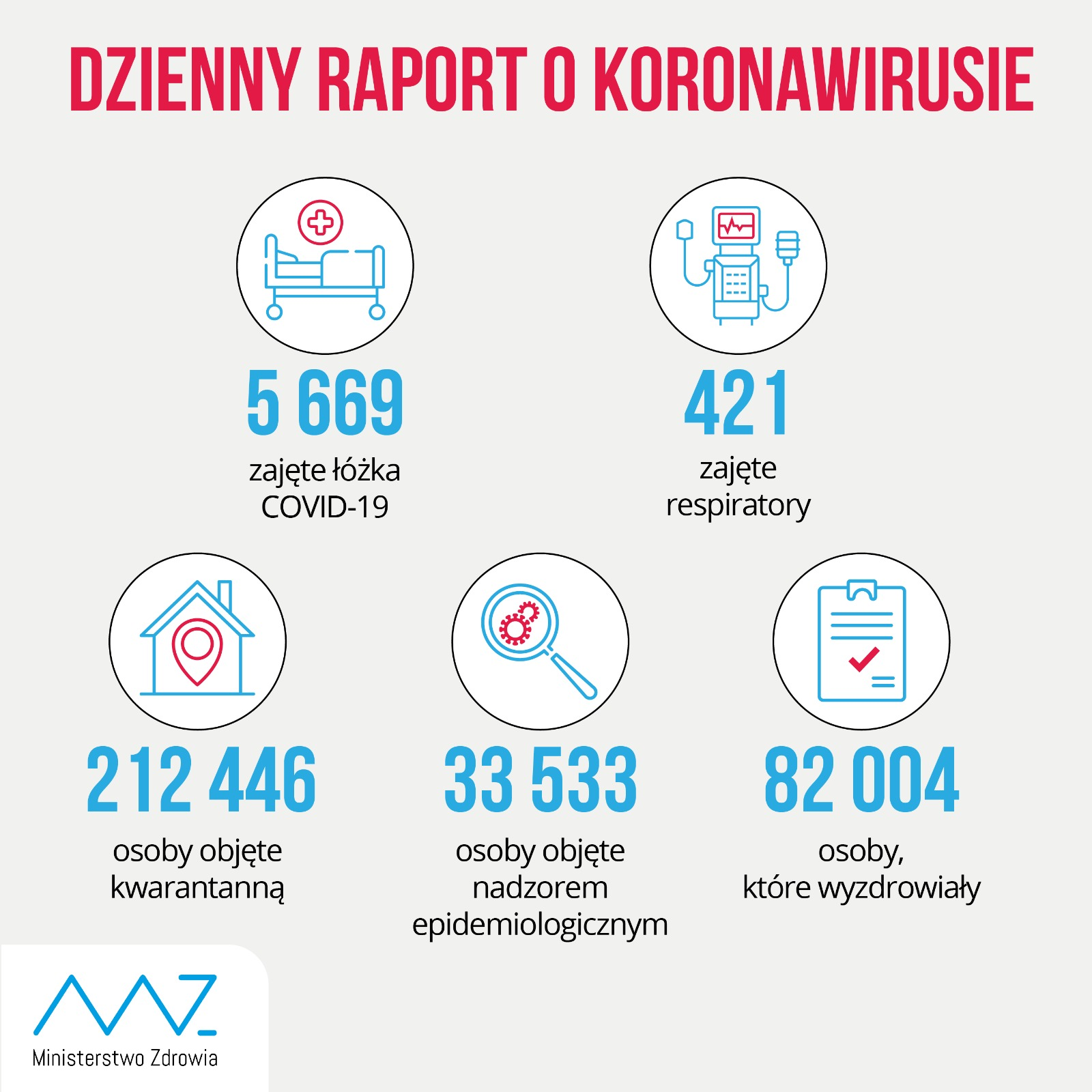 Liczba zakażonych koronawirusem w Polsce wynosi 135 278. Zmarło 3 101 osob wyzdrowiało 82 004.