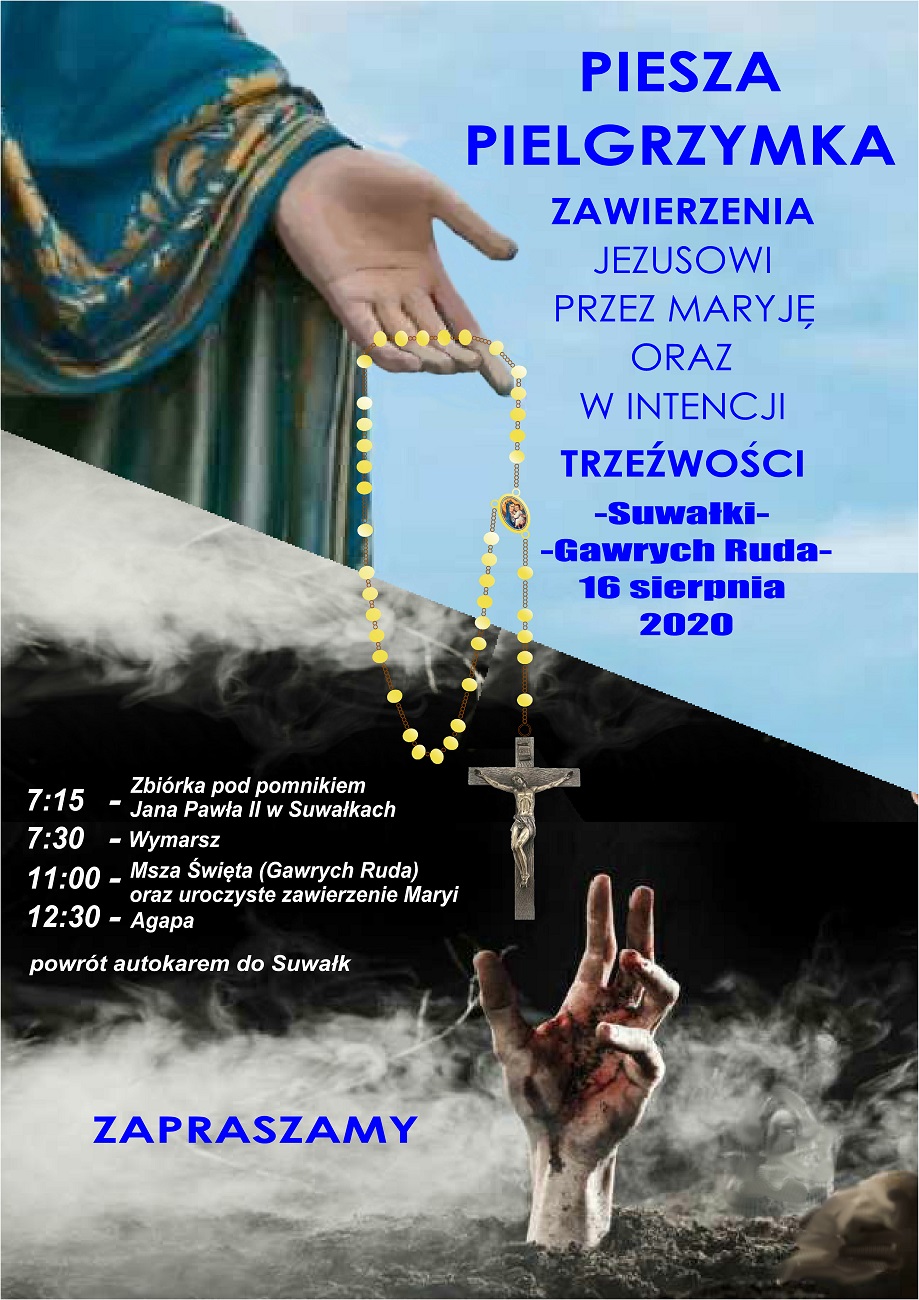Kuria w Ełku serdecznie zaprasza w niedzielę, 16 sierpnia na Pieszą Pielgrzymkę Zawierzenia Jezusowi przez Maryję oraz w intencji trzeźwości z Suwałk do Gawrych Rudy.