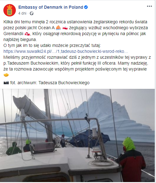 Grenlandia to terytorium Danii, w ubiegłym tygodniu duńska ambasada w Warszawie opublikowała post na swoim profilu FB, w którym zamieściła link do artykułu w naszym portalu, w którym informowaliśmy o rekordzie świata ustanowionym z udziałem suwalskiego przedsiębiorcy.