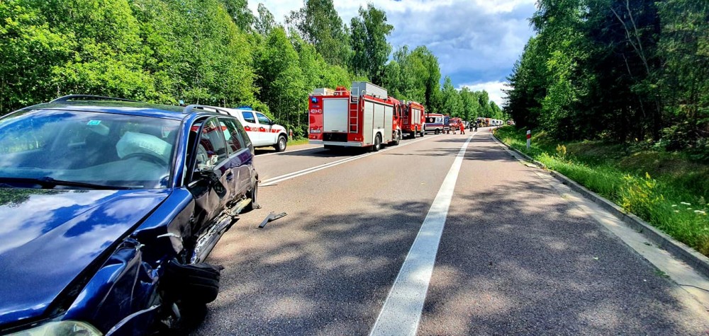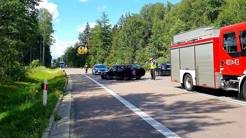 - Do Stanowiska Kierowania Komendanta Powiatowego PSP w Augustowie wpłynęło zgłoszenie o wypadku drogowym na DK8 w miejscowości Zielone w gminie Augustów. Na drodze krajowej doszło do czołowego zderzenia trzech samochodów osobowych. W zdarzeniu poszkodowanych zostało osiem osób, w tym troje dzieci .Poszkodowani zostali przewiezieni do Szpitali w Augustowie, Suwałkach, Sokółce i Białymstoku. Działania zastępów Straży polegały na zabezpieczeniu miejsca zdarzenia wyznaczeniu i zabezpieczeniu lądowiska dla śmigłowców LPR oraz udzieleniu kwalifikowanej pierwszej pomocy uczestnikom wypadku. W działaniach brały udział dwa śmigłowce LPR, cztery karetki pogotowia oraz Policja. Ruch drogowy na DK8 w czasie trwania działań był całkowicie zablokowany przez trzy godziny – informuje Komenda Powiatowa Państwowej Straży Pożarnej w Augustowie.