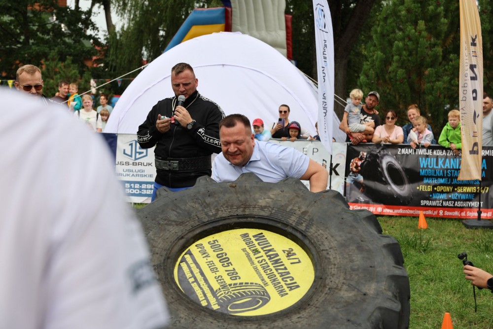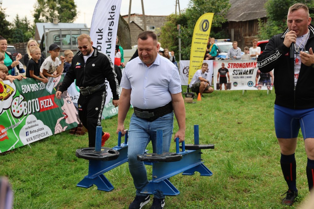 Panowie ( w tym Wójt Gminy Raczki Piotr Gajda)zmierzyli siÄ™ w trzech widowiskowych konkurencjach: