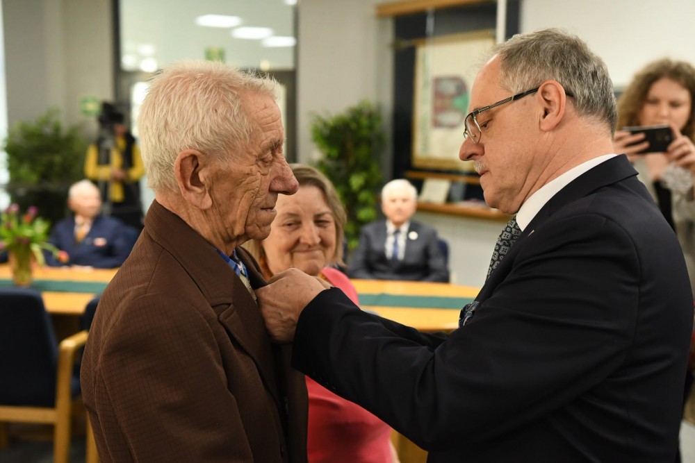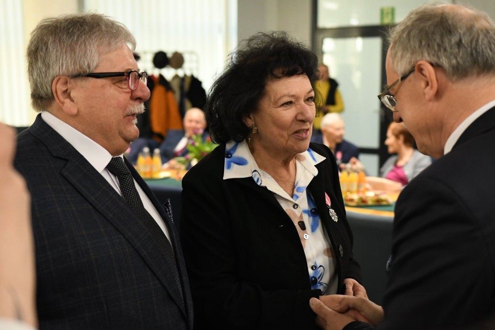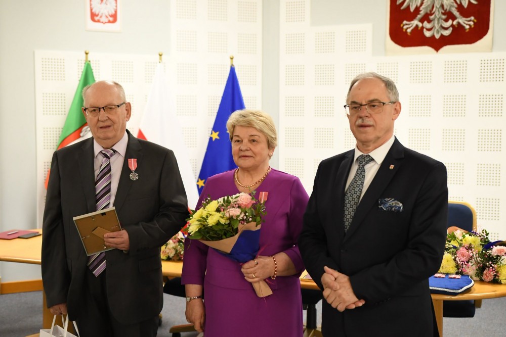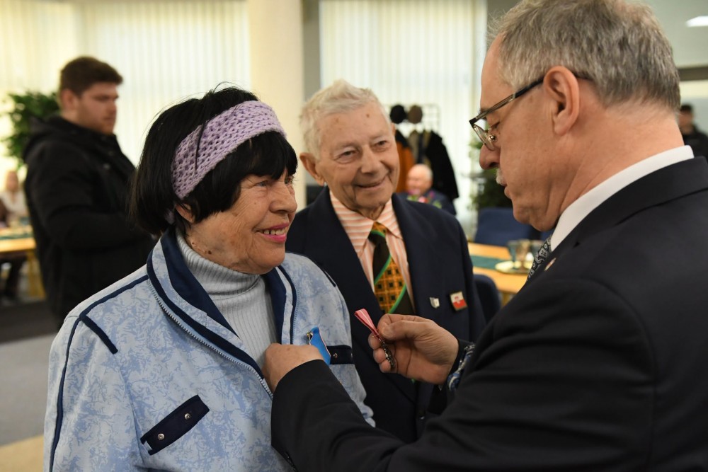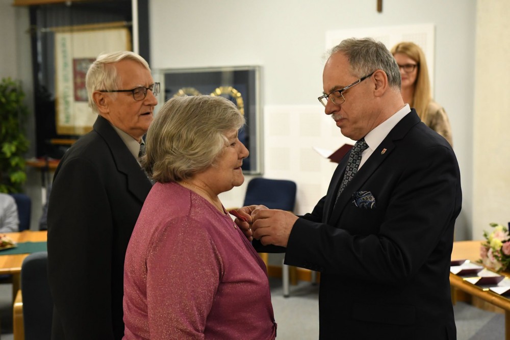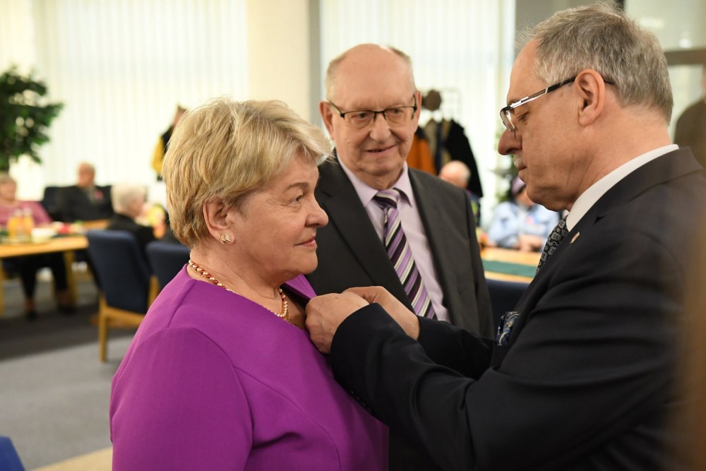W imieniu Prezydenta RP odznaczenia wręczył Prezydent Suwałk Czesław Renkiewicz, który pogratulował wszystkim Jubilatom imponującego stażu.