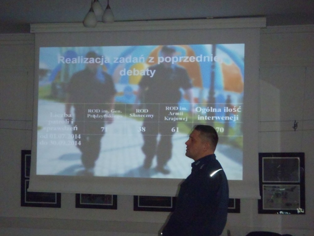 W pierwszej części spotkania policjanci przedstawili i omówili wnioski z poprzedniej debaty, dotyczącej poprawy bezpieczeństwa na ogródkach działkowych. Następnie funkcjonariusze przedstawili analizę bezpieczeństwa w ruchu drogowym na terenie powiatu augustowskiego. Znaczna część debaty była poświęcona bezpieczeństwu pieszego uczestnika ruchu drogowego.