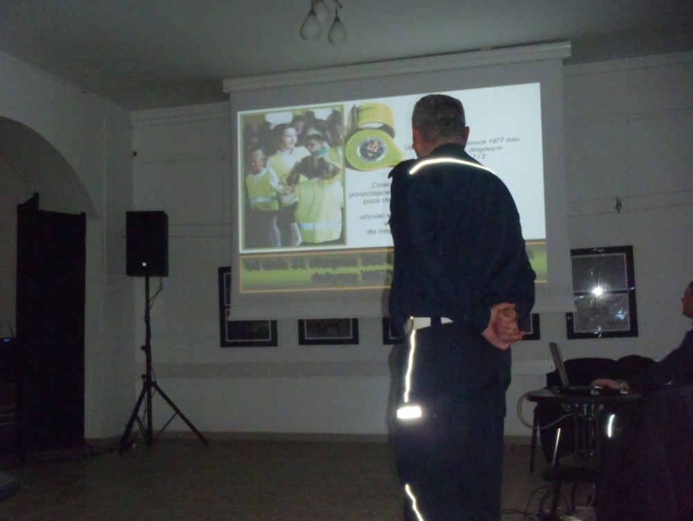 Mając na względzie bezpieczeństwo niechronionych uczestników ruchu drogowego funkcjonariusze przypomnieli zgromadzonym o nowelizacji ustawy prawo o ruchu drogowym. Zgodnie z obowiązującymi przepisami od 31 sierpnia 2014 każdy pieszy poruszający się poza terenem zabudowanym, po zmierzchu ma obowiązek posiadania elementów odblaskowych umieszczonych w sposób widoczny dla innych uczestników ruchu drogowego.