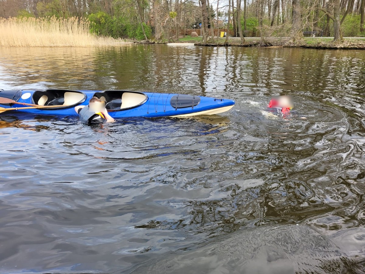 W piÄ…tek, okoÅ‚o 17.00, mundurowi patrolujÄ…c jezioro Necko zauważyli przewrócony kajak, a obok niego dwóch mężczyzn.