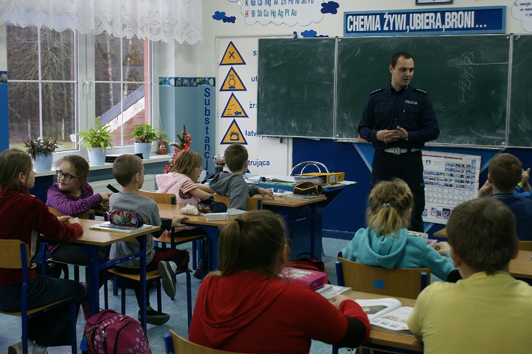 Podczas spotkania w Białobrzegach funkcjonariusze omawiali z dziećmi podstawowe zasady bezpieczeństwa w ruchu drogowym oraz mówili jakie warunki musi spełnić uczeń szkoły, który ubiega się o kartę rowerową. Policjanci przedstawili również zakres materiału, który powinien opanować każdy, kto będzie przystępował do egzaminu teoretycznego i praktycznego na kartę rowerową. Funkcjonariusze wyjaśniali uczniom jak ważne dla bezpieczeństwa pieszego jest używanie elementów odblaskowych, przypominali o obowiązku noszenia ich poza terenem zabudowanym oraz zachęcali do używania odblasków w mieście. W ramach działań „Bezpieczna Woda” policjanci poruszyli także tematykę związaną z zagrożeniami jakie mogą wystąpić w czasie przebywania na zamarzniętych rzekach, stawach i jeziorach.