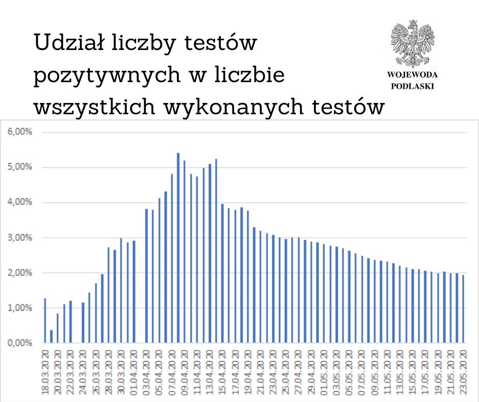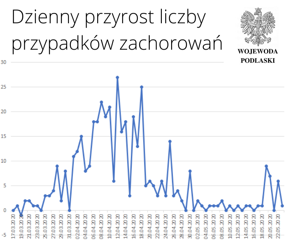 W sumie w województwie podlaskim mamy 414 potwierdzonych przypadków zakażenia COVID-19. Zmarło 9 osób, wyzdrowiało 345.