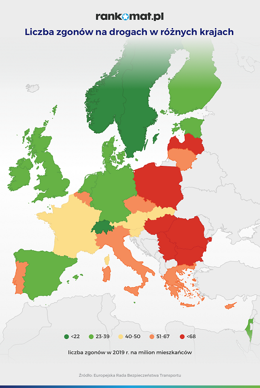 Polska znalazÅ‚a siÄ™ również na trzecim miejscu w Europie pod wzglÄ™dem Å›redniej liczby zgonów na drogach na 1 mln mieszkaÅ„ców. Niebezpieczniej jest jedynie w Rumunii i BuÅ‚garii. Tak wynika z najnowszego raportu Europejskiej Rady BezpieczeÅ„stwa Transportu (ETCS), któremu przyjrzeli siÄ™ eksperci rankomat.pl..