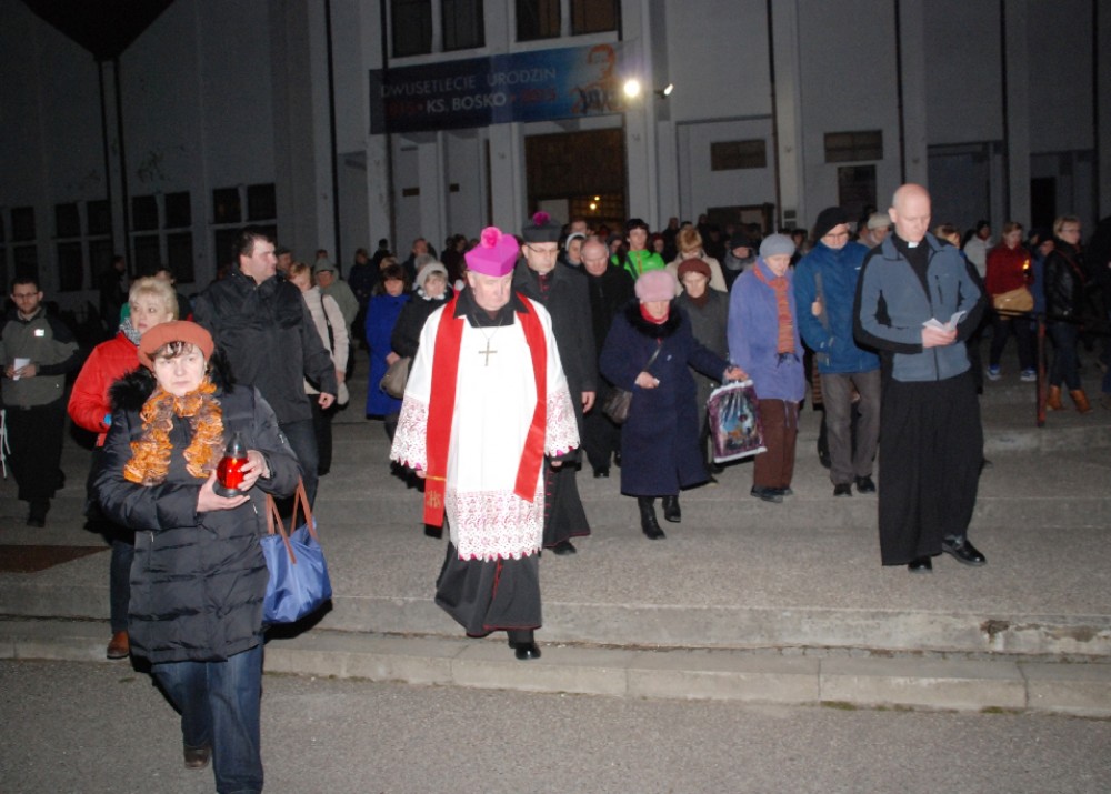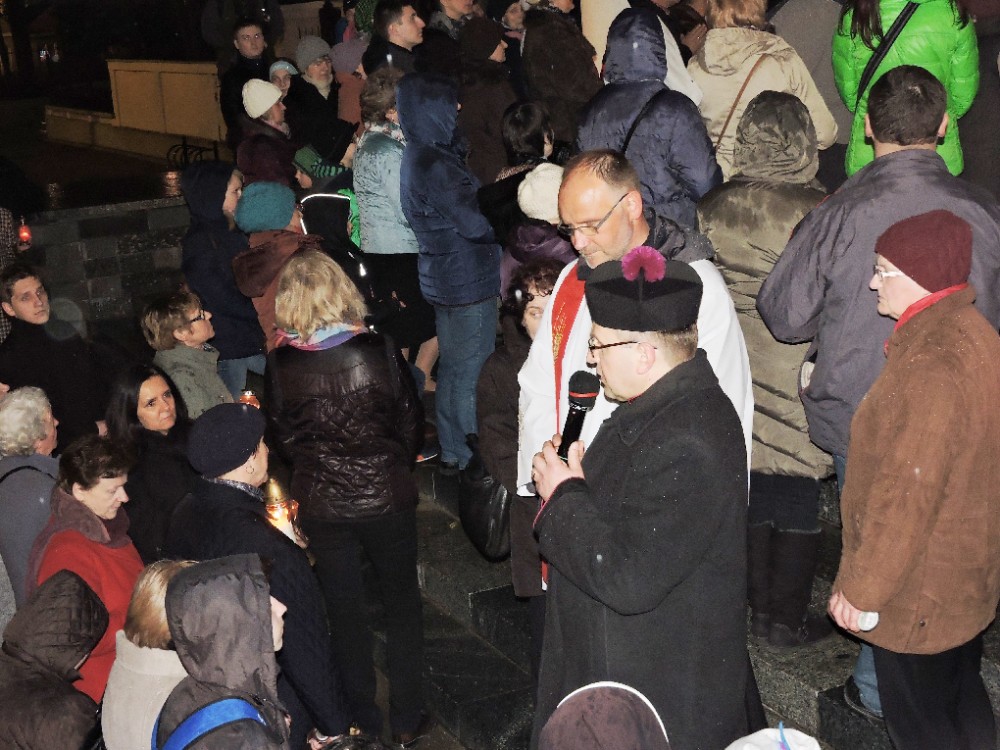 W rozważaniach – w nawiÄ…zaniu do obchodzonego Roku Osób Konsekrowanych - zastanawiano siÄ™ m.in. nad istotÄ… powoÅ‚ania. Trasa rozważaÅ„ czternastu stacji MÄ™ki PaÅ„skiej rozpoczęła siÄ™ w parafii pw. Matki Bożej MiÅ‚osierdzia, by nastÄ™pnie ulicÄ… Chopina i NowomiejskÄ… przejść pod KoÅ›cióÅ‚ pw. Chrystusa Króla i dalej ulicami Podhorskiego, Dwernickiego, KoÅ›ciuszki do parafii pw. Å›w. Aleksandra. Krzyż nieÅ›li m.in. przedstawiciele parafii, różnych stanów (mężczyźni, kobiety, mÅ‚odzież), osoby konsekrowane (zakonnicy i zakonnice) oraz księża.