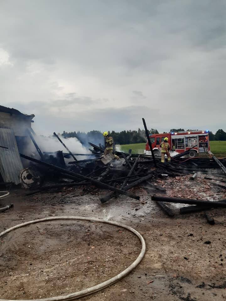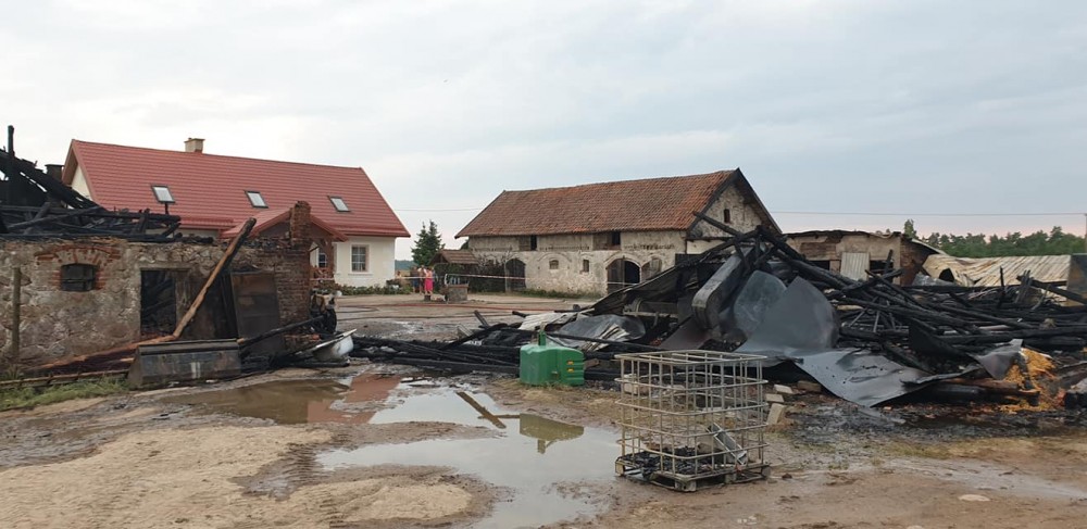 Stodoła, budynek gospodarczy, maszyny i płody rolne spłonęły doszczętnie w pożarze, który miał miejsce w Sokołach w gminie Gołdap.