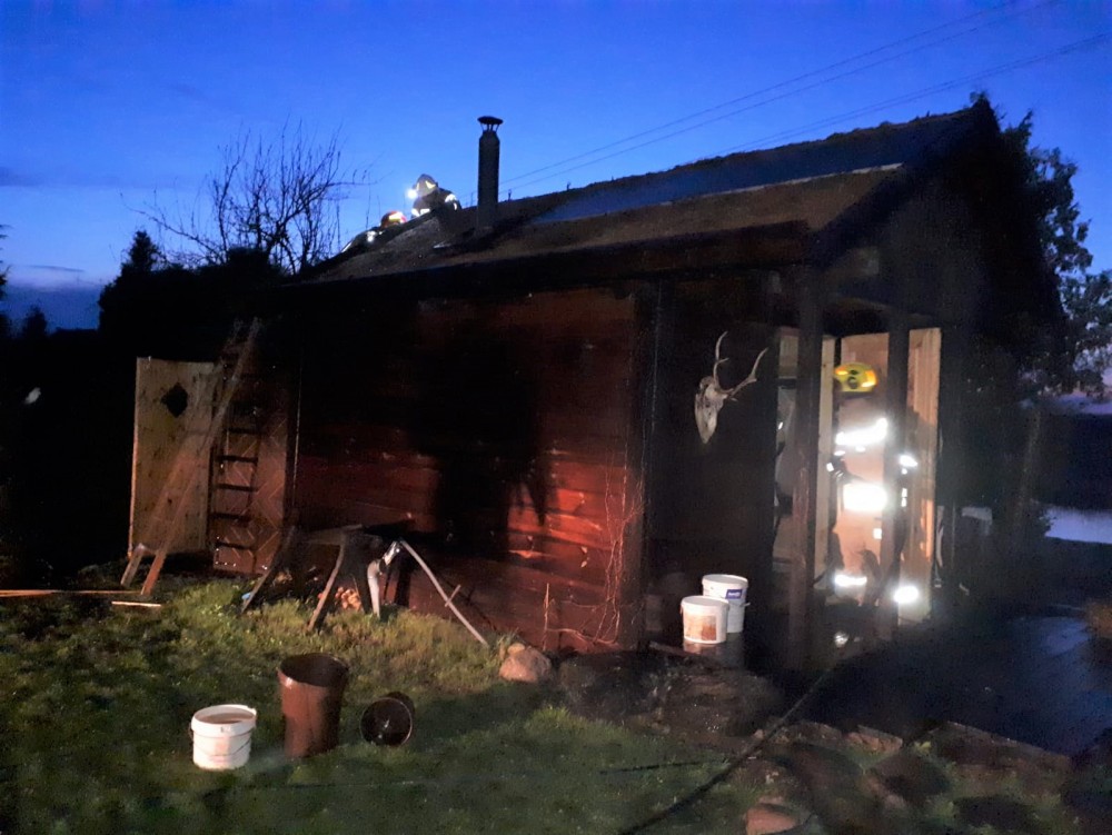 Strażacy otrzymali zgłoszenie o zgłoszenie o pożarze sauny w Jaziewie koło Sztabina.