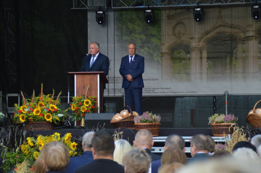 Wraz z Andrzejem Szymulewski, wójtem Gminy Raczki starosta powitał licznie zgromadzonych gości: rolników, senatora Marka Komorowskiego, wiceprzewodniczącego Rady Sejmiku Wojewódzkiego Cezarego Cieślukowskiego, wójtów z okolicznych gmin, przewodniczących rad i radnych, przedstawicieli służb mundurowych, dyrektorów instytucji kultury oraz delegacje z zaprzyjaźnionych ze Starostwem Powiatowym w Suwałkach miejscowości na Litwie, sponsorów i przedstawicieli organizacji służących rolnikom pomocą: ARMiR, ODR, KRUS.