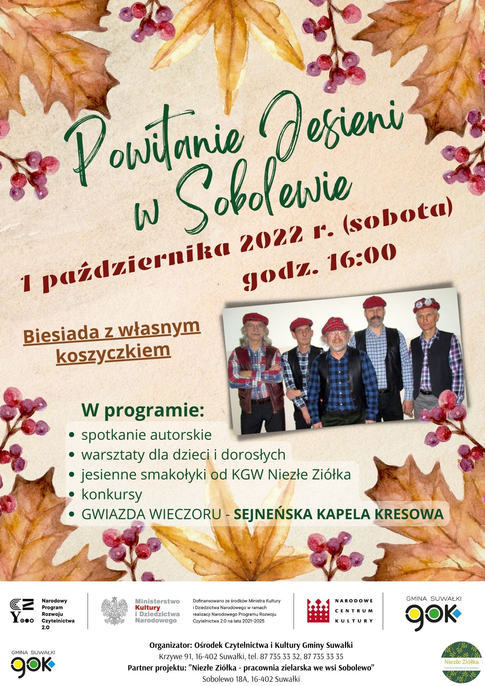 Serdecznie zapraszamy na uroczystość Powitania Jesieni, które odbędzie się 1 października 2022 r. (sobota) przy świetlicy w Sobolewie.