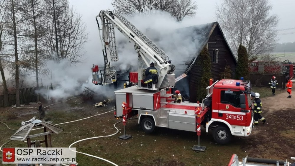 Jak informuje Ochotnicza Straż Pożarna w Raczkach, do pożaru budynku jednorodzinnego w zabudowie gospodarskiej w miejscowości Rabalina doszło we wtorek około godziny 13:50. Mieszkańcowi udało się uciec z budynku jednak doznał poparzeń ciała. Wraz z sąsiadem próbowali gasić pożar do przybycia pierwszych zastępów straży pożarnej. W działaniach uczestniczy osiem zastępów, w tym OSP Raczki, OSP Sidory i OSP Wierciochy oraz cztery zastępy Państwowej Straży Pożarnej z Suwałk. Łącznie 28 ratowników.