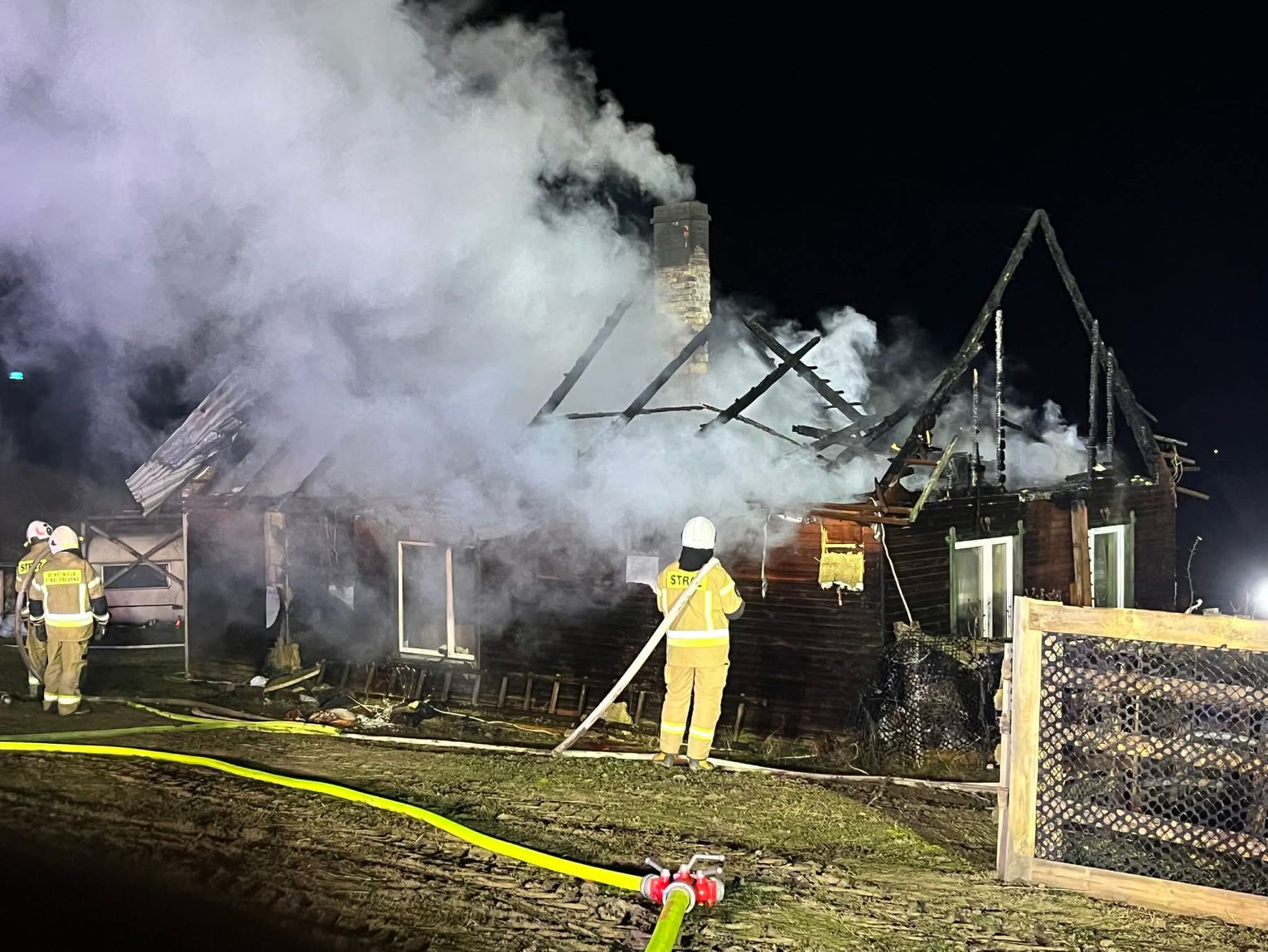 Na miejsce wysÅ‚ano 10 zastÄ™pów straży pożarnej i samochód operacyjny, PolicjÄ™ oraz zakÅ‚ad energetyczny. Akcja gaÅ›nicza trwaÅ‚a do rana. Budynek nie nadaje siÄ™ do zamieszkania. Starszego małżeÅ„stwa, które go zamieszkiwaÅ‚o, na szczęście nie byÅ‚o w tym czasie w domu.