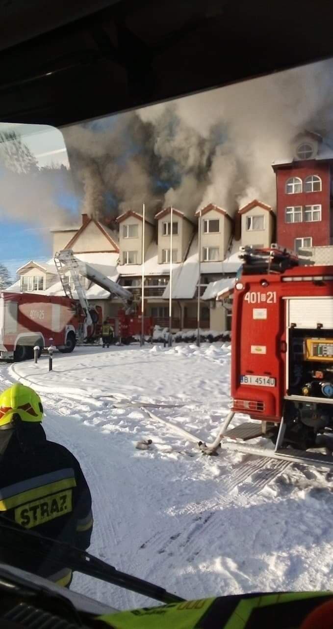 - PÅ‚onie poddasze budynku. Wszystkie osoby, które tam przebywaÅ‚y przed wybuchem pożaru opuÅ›ciÅ‚y obiekt. SiÅ‚y i Å›rodki dość znaczne, bo duży pożar. Niestety, jest jeszcze nie opanowany - mówi Marcin Janowski z PaÅ„stwowej Straży Pożarnej w BiaÅ‚ymstoku.