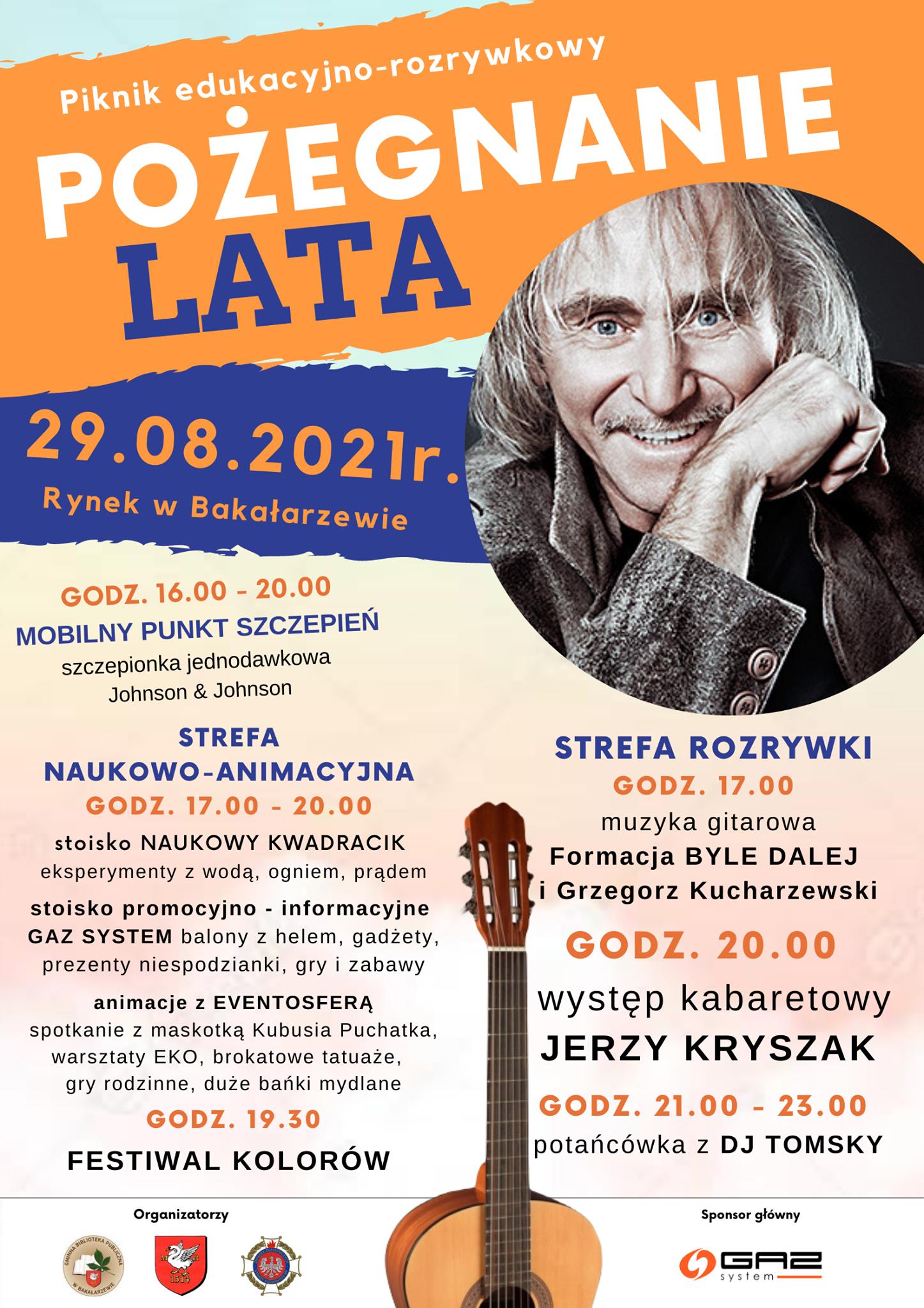 Już w najbliższą niedzielę, 29 sierpnia, zapraszamy wszystkich na Rynek w Bakałarzewie na Piknik edukacyjno-rozrywkowy "Pożegnanie lata".