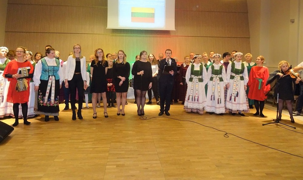 Młodzi i starsi litewscy artyści - amatorzy z Suwałk śpiewali, tańczyli i grali dla licznie zgromadzonych gości, wśród których był premier Litwy Saulius Skvernelis, na koncercie z okazji 101. rocznicy odzyskania przez Litwę niepodległości.