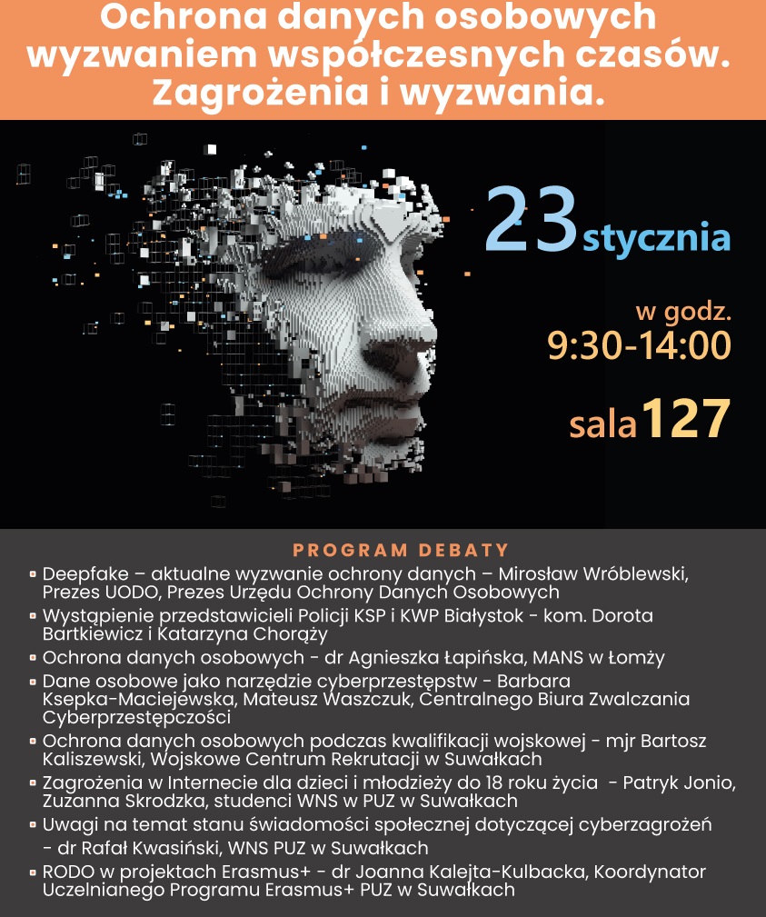 W czasie debaty wystąpią m.in.: prezes UODO Mirosław Wróblewski, przedstawiciele Policji KSP i KWP Białystok, przedstawiciel Centralnego Biura Zwalczania Cyberprzestępczości, a także studenci.