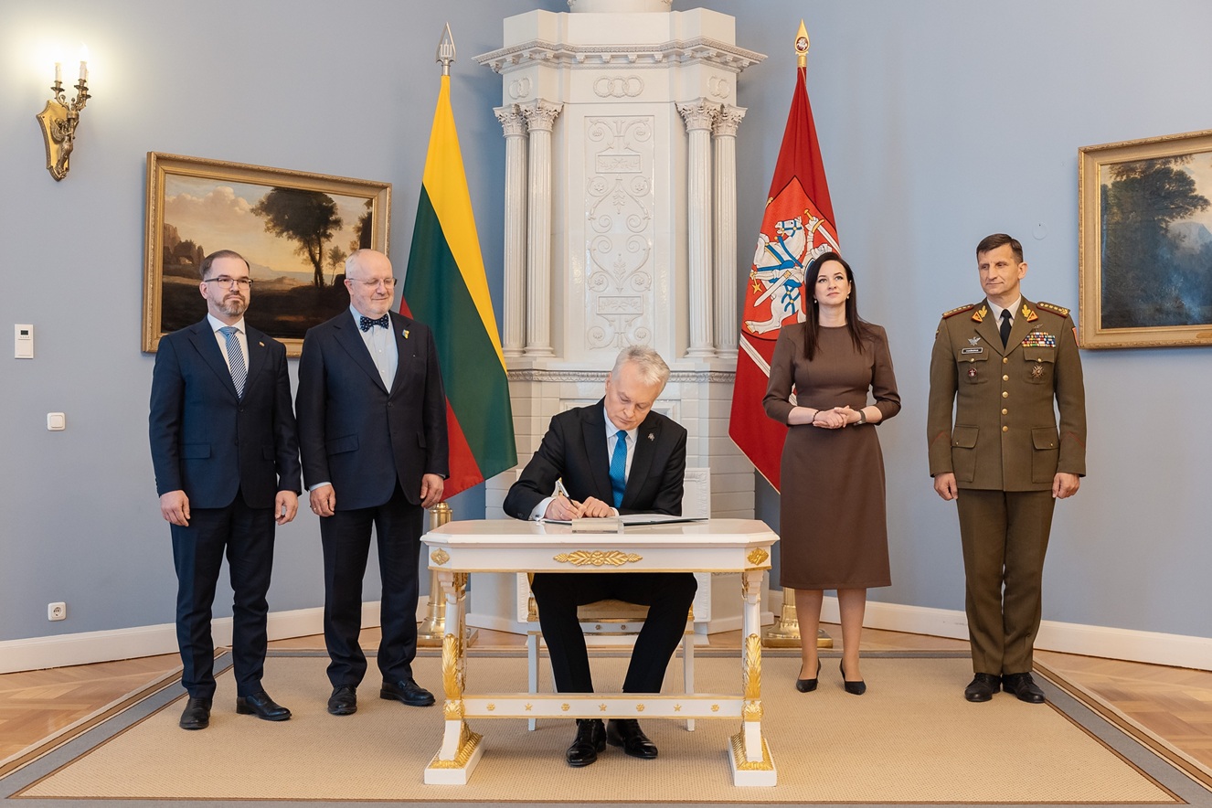 Prezydent Republiki Litewskiej Gitanas Nausėda w czwartek, 30 kwietnia w obecności przewodniczącego Sejmu Juozasa Olekasa i premier Ingi Ruginienė, a także ministra obrony narodowej i głównodowodzącego Litewskich Sił Zbrojnych, podpisał ustawy o utworzeniu poligonu Kapčiamiestis i rozbudowie poligonu w Taurogach .