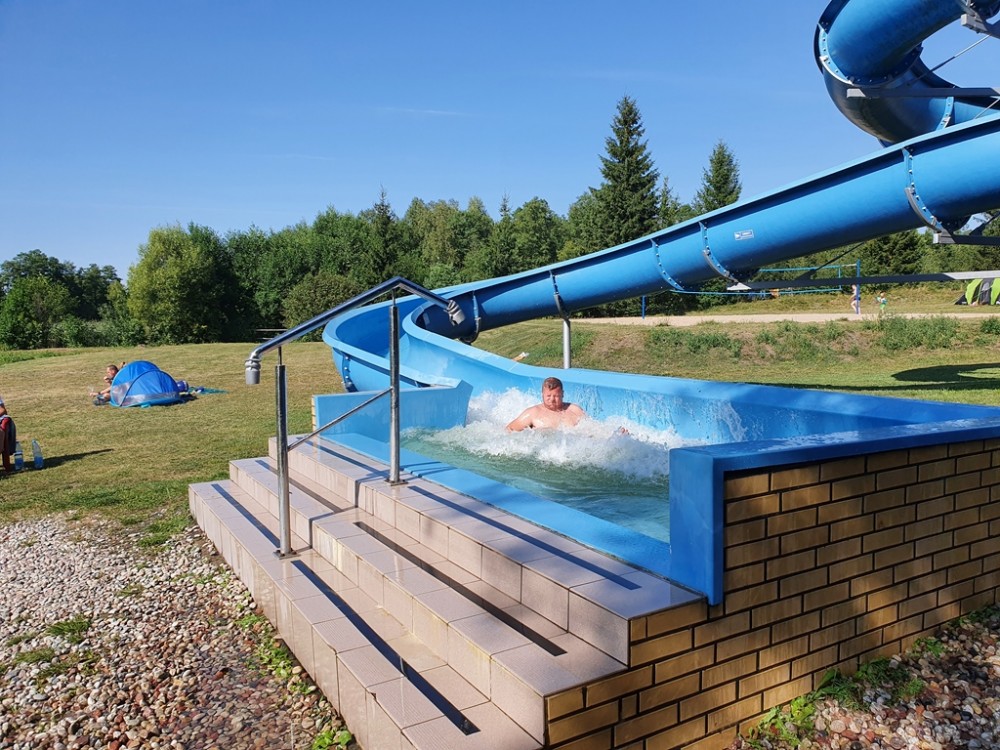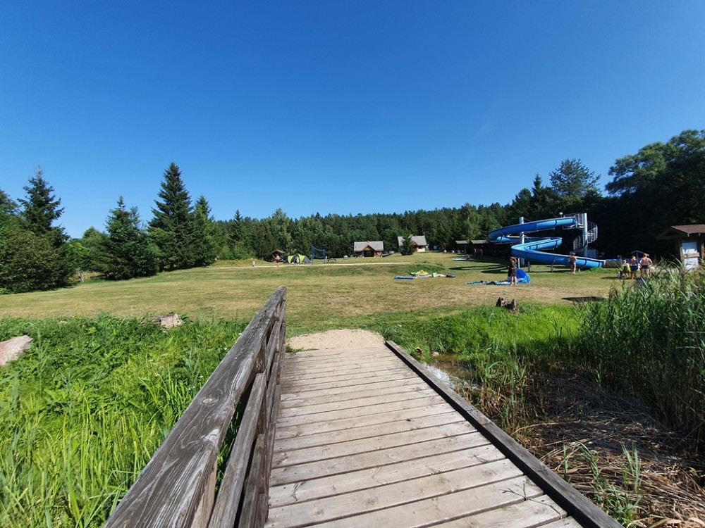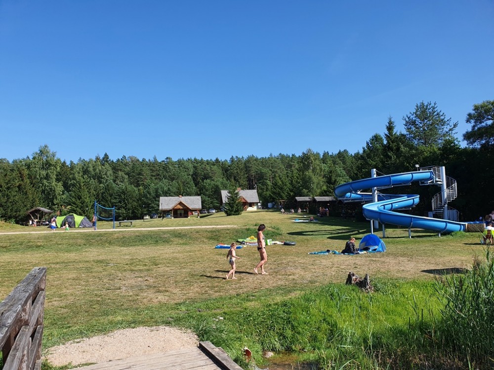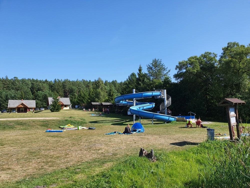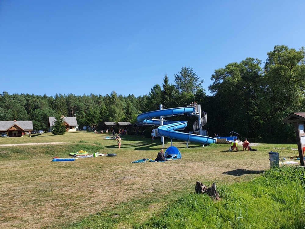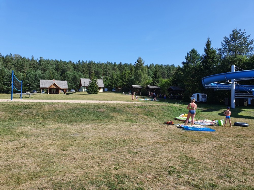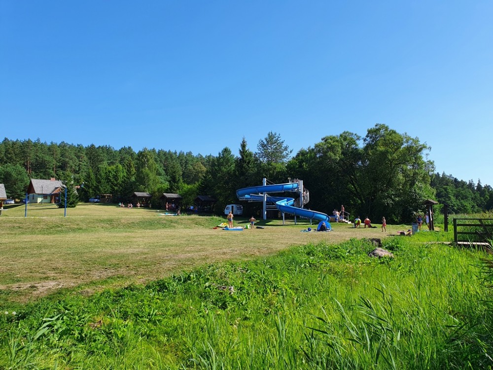 Jest kemping z zadaszonym grillem, budynkiem socjalno-kuchennym i sanitariatami, boisko do siatkówki plażowej, dwa pomosty, przebieralnie, no i zjeżdżalnia, na której równie chętnie jak dzieci, bawią się dorośli.