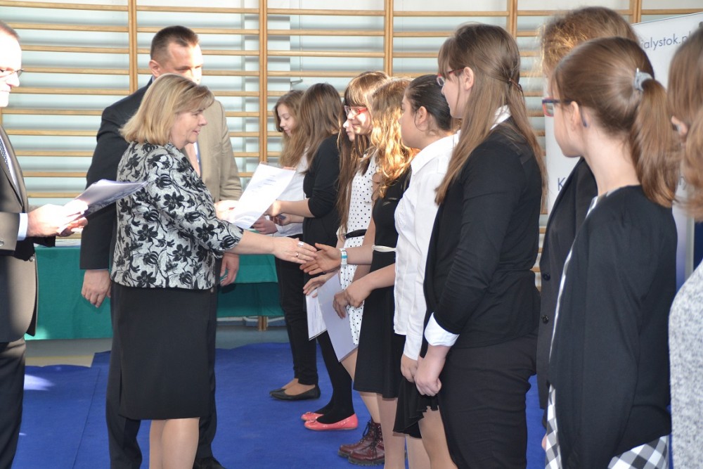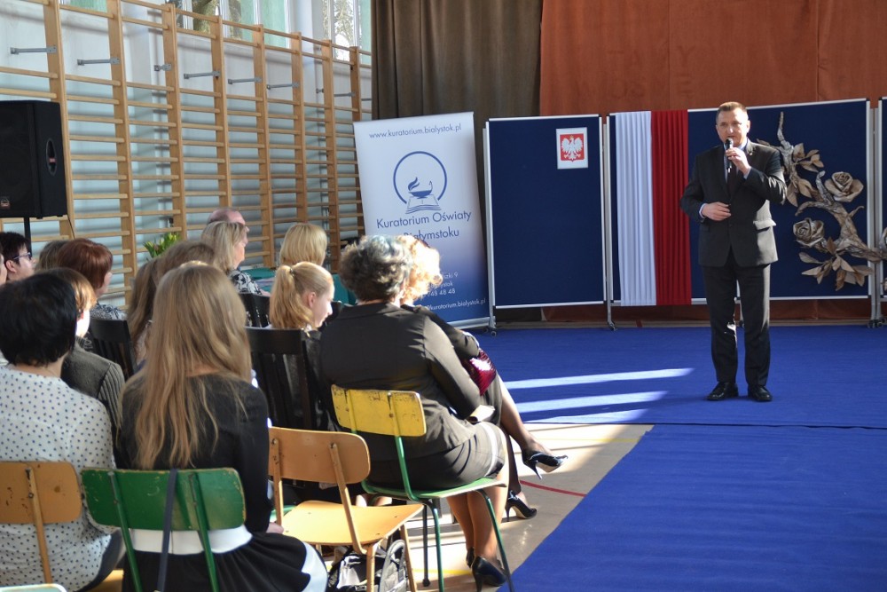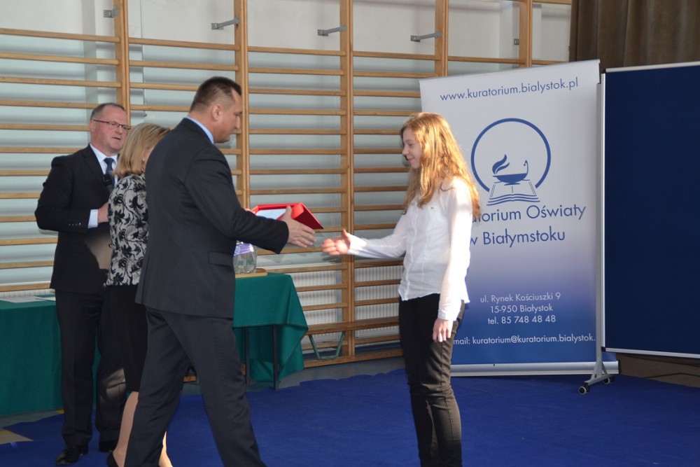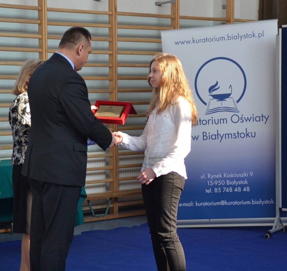 W środę odebrała zasłużone brawa, gratulacje oraz pamiątkowy grawerton z rąk Wojciecha Dierzgowskiego – zastępcy wojewody podlaskiego i Wiesławy Ćwiklińskiej – podlaskiej wicekurator oświaty.