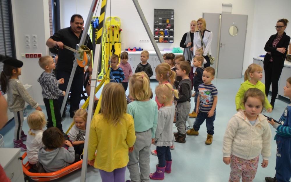 Dlatego jednym ze staÅ‚ych punktów programu wizyty w budynku przy Innowacyjne jest telefoniczna rozmowa z dyspozytorem pogotowia. Maluchy majÄ… za zadanie chwilÄ™ z nim porozmawiać, uczÄ… siÄ™ jak zachować wtedy spokój i jak opowiedzieć o problemie, który zgÅ‚aszajÄ….