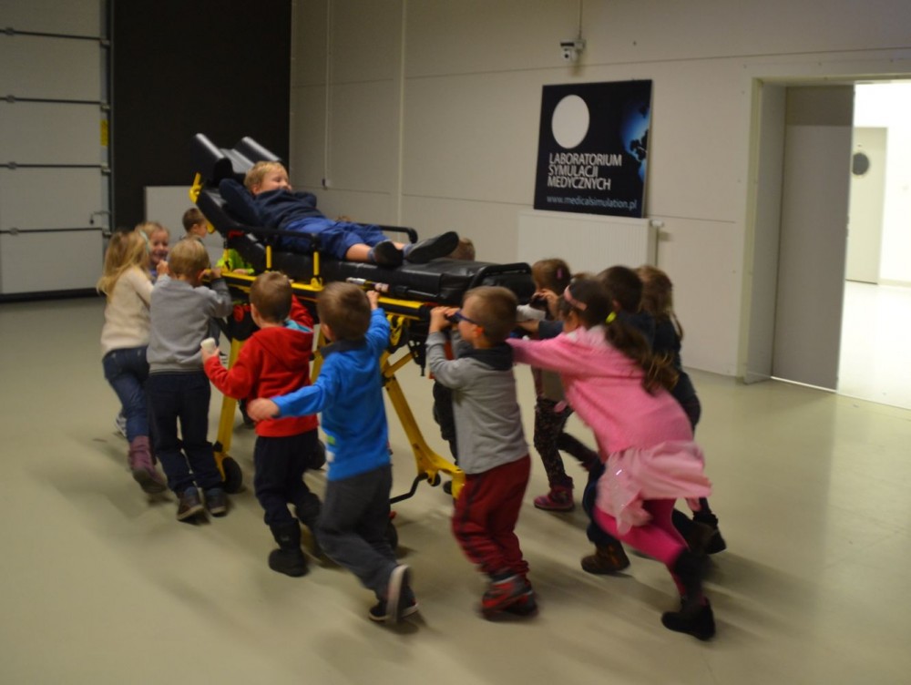 Zaciekawione twarze rozglądają się po białych ścianach. Co odważniejsze maluchy podchodzą do urządzeń i spoglądają na migocące ekrany. Po chwili nie boją się już niczego i chwytają fantom za rękę, dziwiąc się, że jest jak żywa. Największą frajdę sprawia im przejażdżka symulatorem karetki.