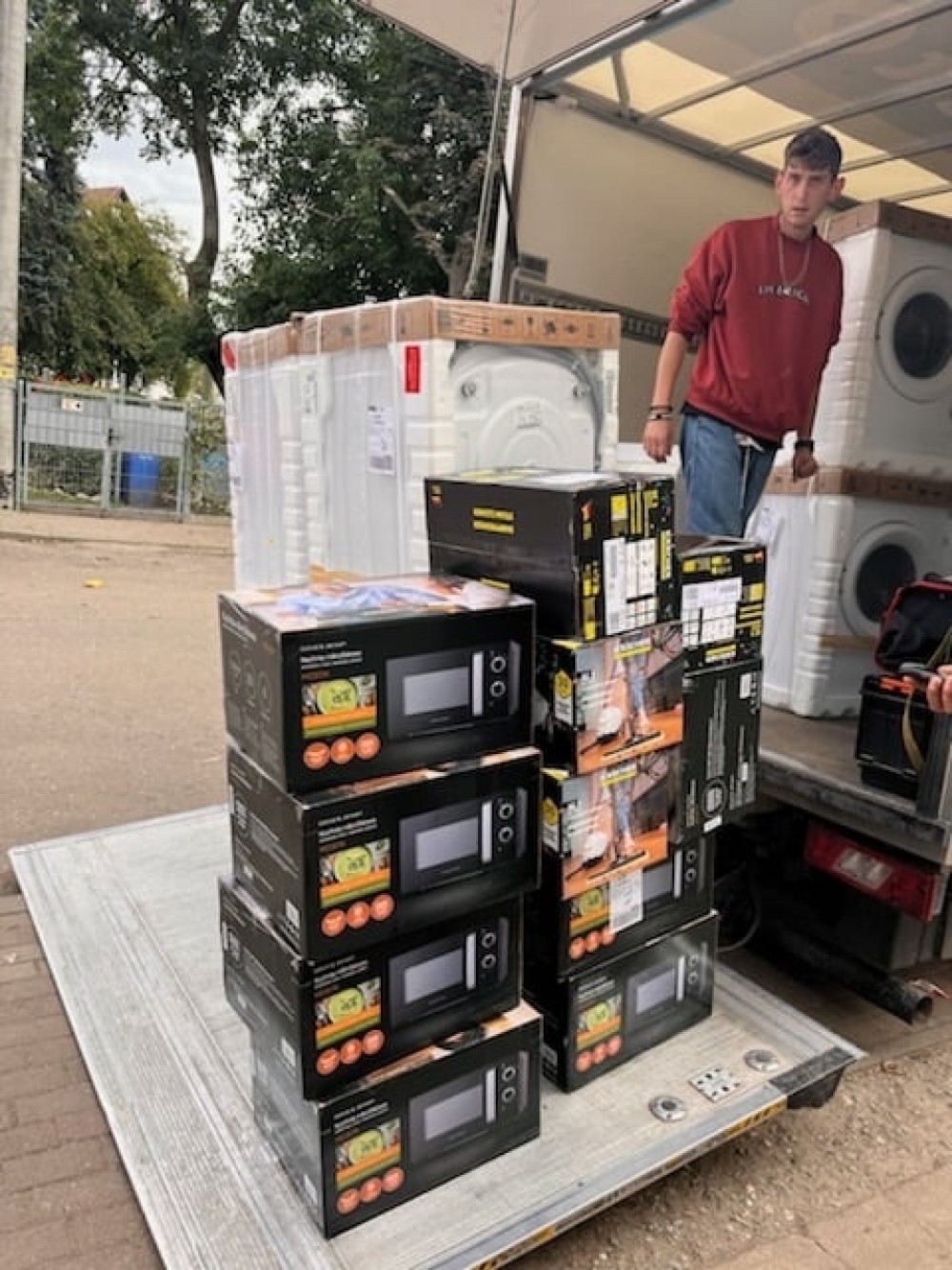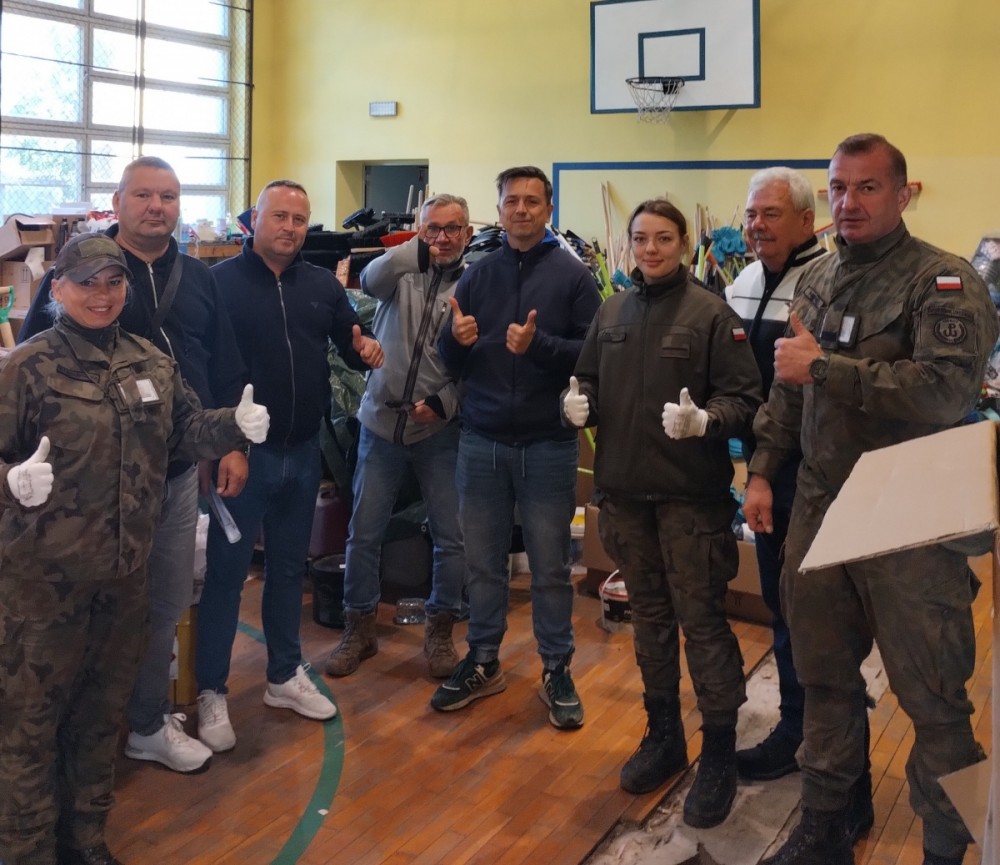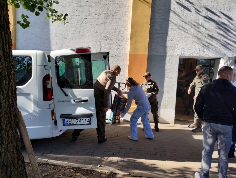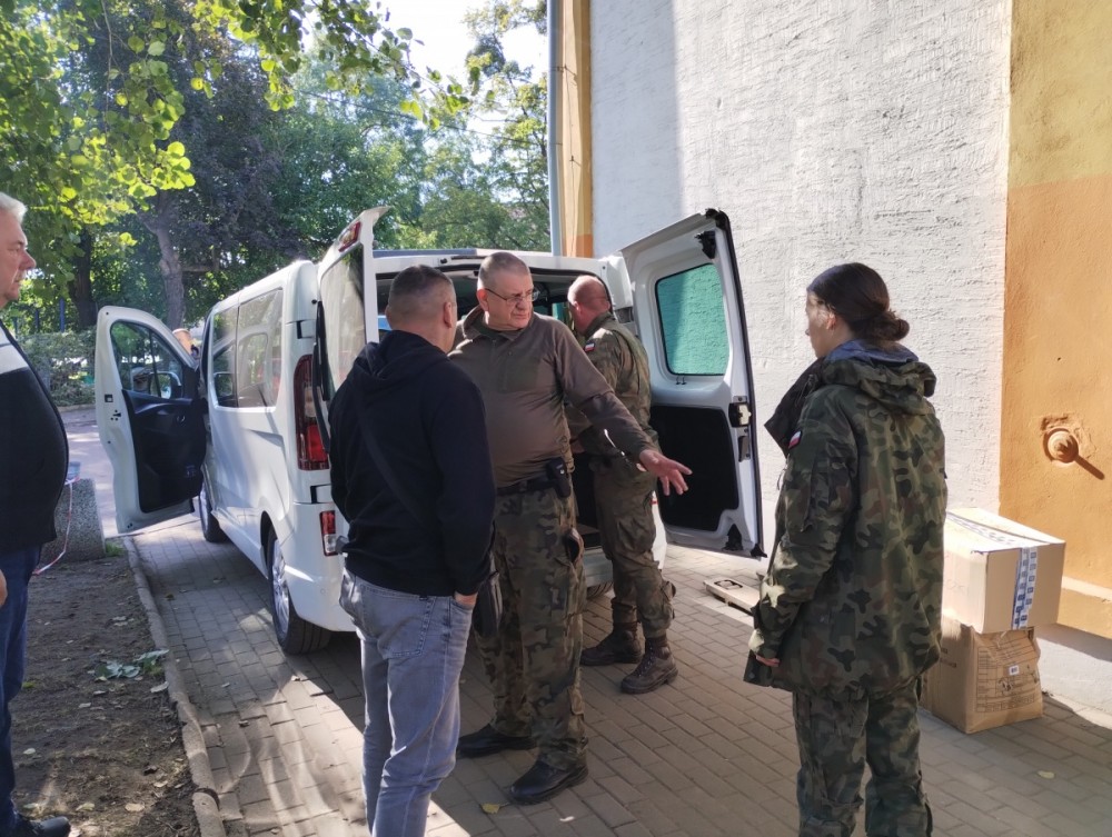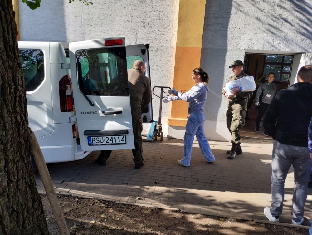 Wójt Marcin Brzozowski, przewodniczący Rady Gminy Sylwester Milewski i radny Piotr Dyczewski dostarczyli artykuły zebrane w zbiórkach prowadzonych na terenie gminy oraz sprzęt zakupiony na kwotę 45 000 zł ze środków przekazanych przez mieszkańców Gminy Przerośl.