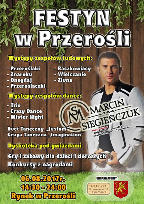 - Serdecznie zapraszam nie tylko mieszkaÅ„ców naszej gminy, ale także goÅ›ci i turystów wypoczywajÄ…cych w okolicy. PogodÄ™ zamówiliÅ›my, a pracownicy Gminnego OÅ›rodka Kultury, Sportu i Turystyki zadbali o to, aby każdy kto odwiedzi w niedzielÄ™ PrzeroÅ›l znalazÅ‚ coÅ› dal ciaÅ‚a i dla ducha. Na Rynku wystÄ…piÄ… zespoÅ‚y ludowe, dance, a gwiazdÄ… wieczoru bÄ™dzie Marcin SiegieÅ„czuk. BÄ™dÄ… zabawy i konkursy z nagrodami dla najmÅ‚odszych, nieco starszych, tych w wieku Å›rednim i najstarszych. A kiedy zmÄ™czone dzieciaki pójdÄ… spać mÅ‚odzież, doroÅ›li,i a jak zdrowie dopisuje to także babcie i dziadkowie bÄ™dÄ… mogli potaÅ„czyć na dyskotce pod gwiazdami. PRZEROÅšL ZAPRASZA – mówi SÅ‚awomir Renkieiwcz, Wójt Gminy PrzeroÅ›l.