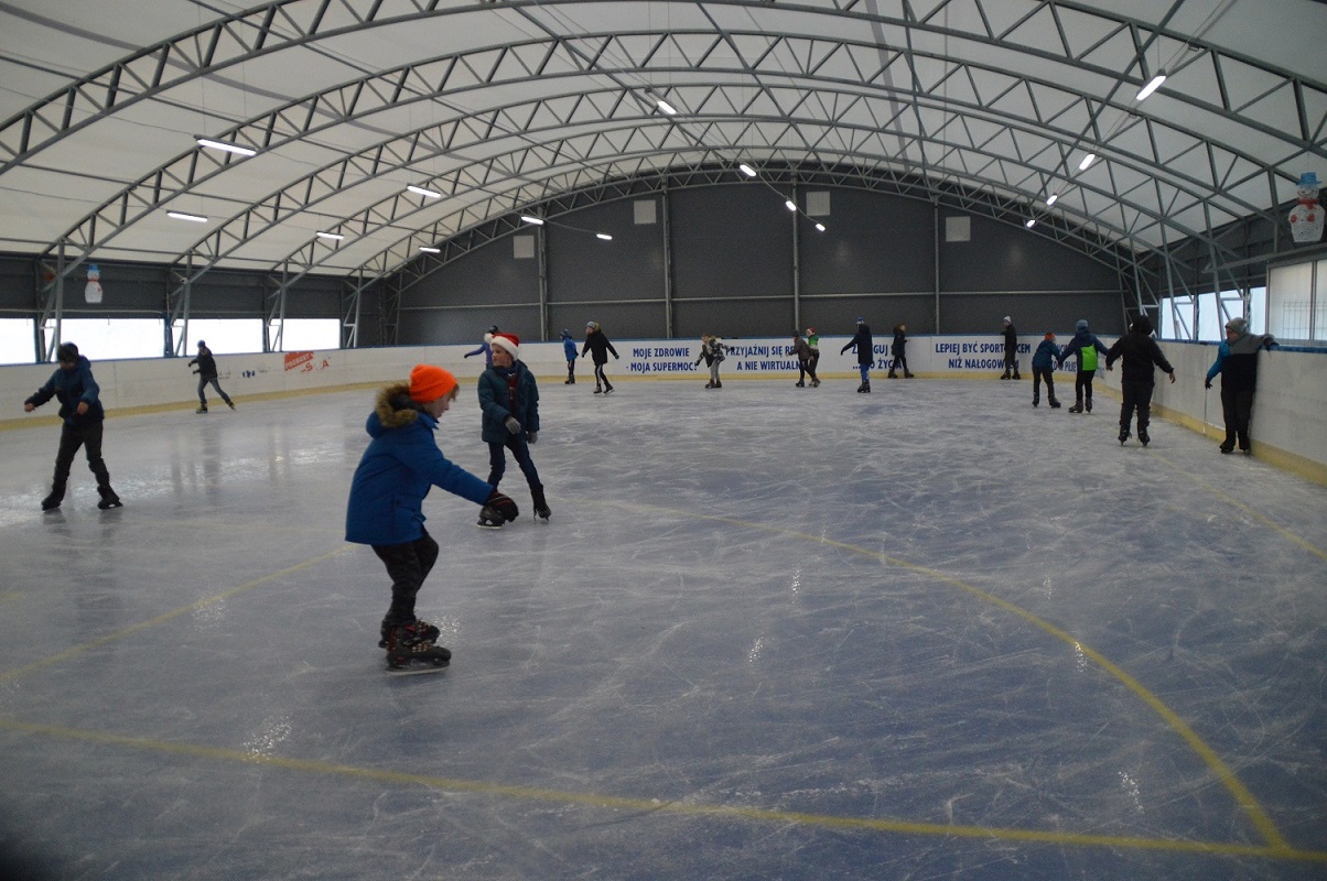 - dostawie wyposażenia lodowiska zgodnie z zamieszczonym wykazem, między innymi: w rolbę elektryczną, frezarkę do lodu, regały na łyżwy, suszarki na łyżwy, łyżwy figurowe i hokejowe, chodziki, sanie lodowe przeznaczone dla wózków inwalidzkich i inne.