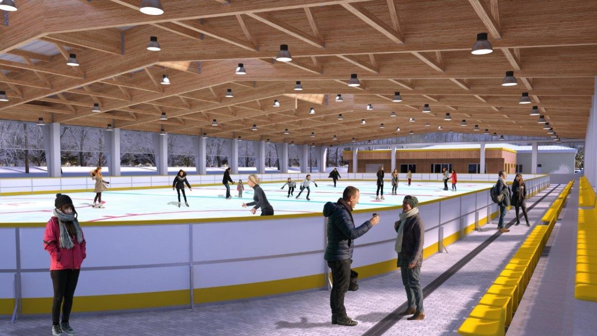 - korekcie zagospodarowania terenu pod katem poprawy funkcjonalności, połączeniu budowanego zaplecza lodowiska z jego płytą, przebudowie oświetlenia zewnętrznego, rozbudowie monitoringu, zagospodarowaniu zieleni z dostawą i montażem elementów małej architektury typu ławki, kosze na śmieci,
