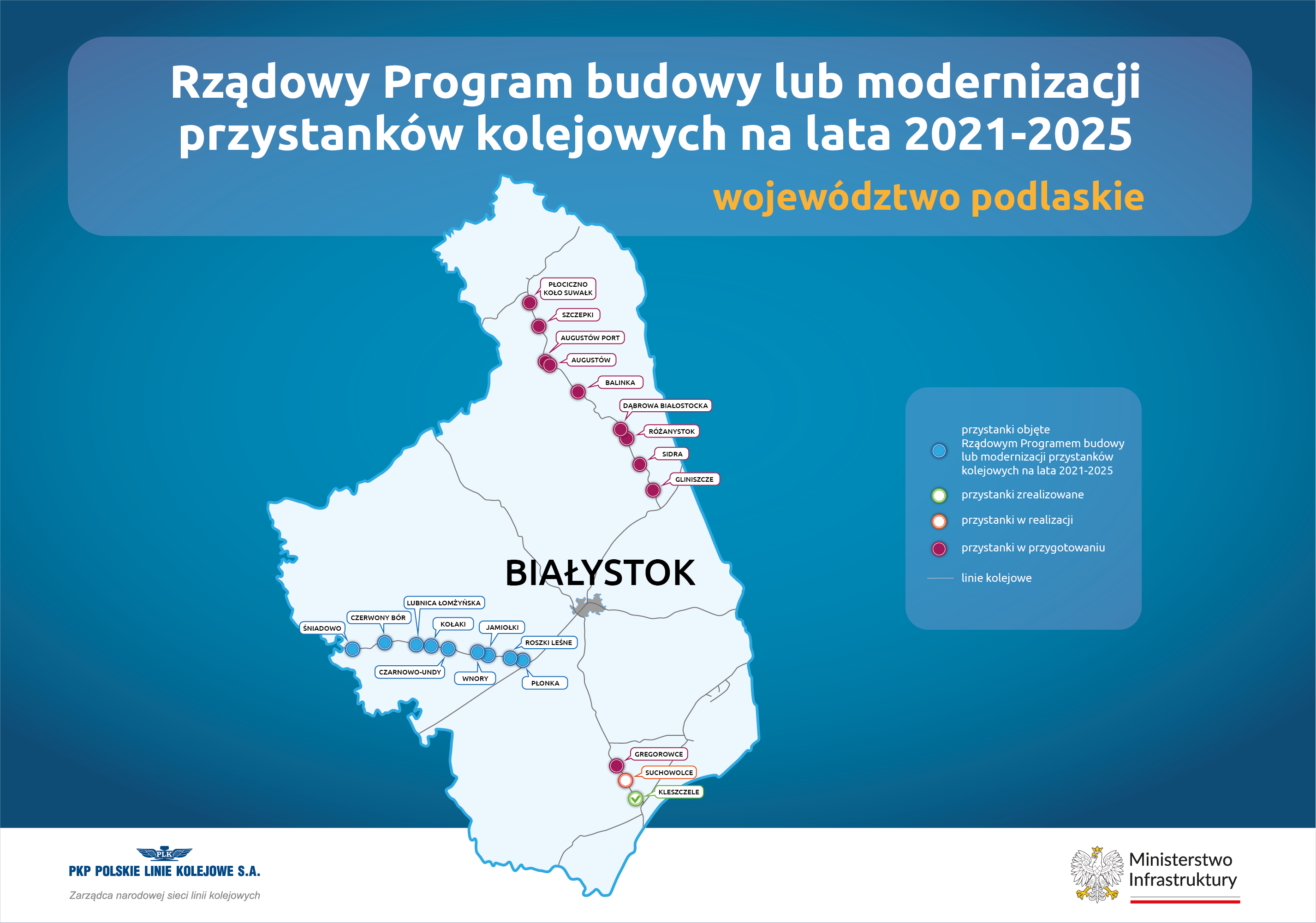 W województwie podlaskim z „Rządowego Programu budowy lub modernizacji przystanków kolejowych na lata 2021-2025” w najbliższych latach będzie wykonane 12 przystanków.