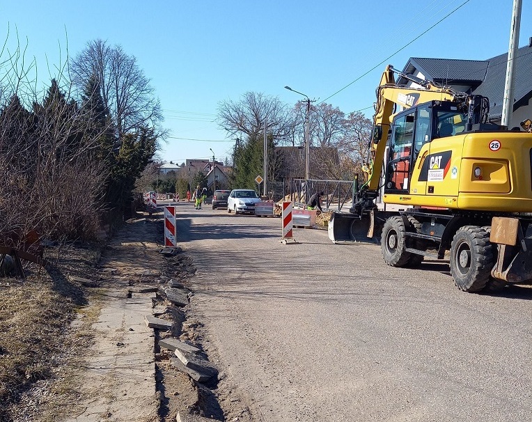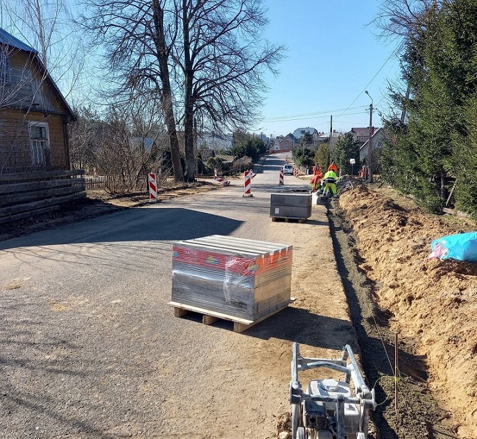 W poniedziałek (21.03.2022 r.) Firma Strabag rozpoczęła prace przy ulicy Wileńskiej, 11 Listopada i A. Mickiewicza w Sejnach. Na początku ul. 11 Listopada będą prowadzone prace rozbiórkowe chodnika. Całość zadania obejmuje m.in. wykonanie na ul. Wileńskiej na wysokości budynku Domu Litewskiego nowego przejścia dla pieszych.