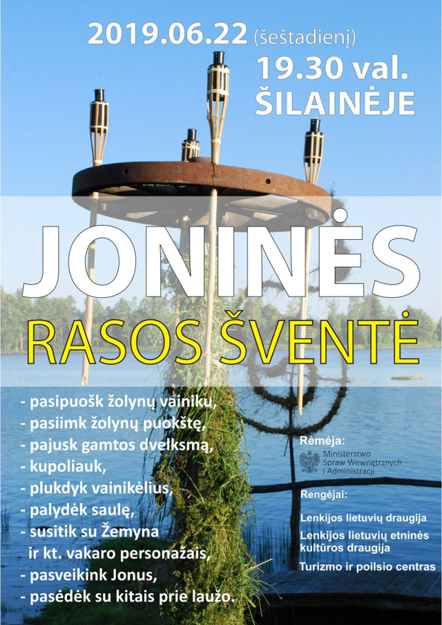 Impreza odbędzie się tradycyjnie w Centrum „Šilainė” nad jeziorem Sejwy (początek o godz. 19.30). W programie m.in.: puszczanie wianków na wodzie, szukanie kwiatu paproci, wróżby czarownic, tańce, muzyka.