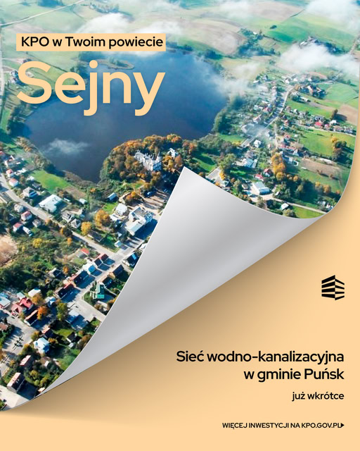 Gmina Puńsk otrzymała 4 mln zł dofinansowania na „Budowę sieci wodociągowej, kanalizacji sanitarnej oraz wiaty do osadów w miejscowości Puńsk” w ramach Krajowego Planu Odbudowy i Zwiększania Odporności