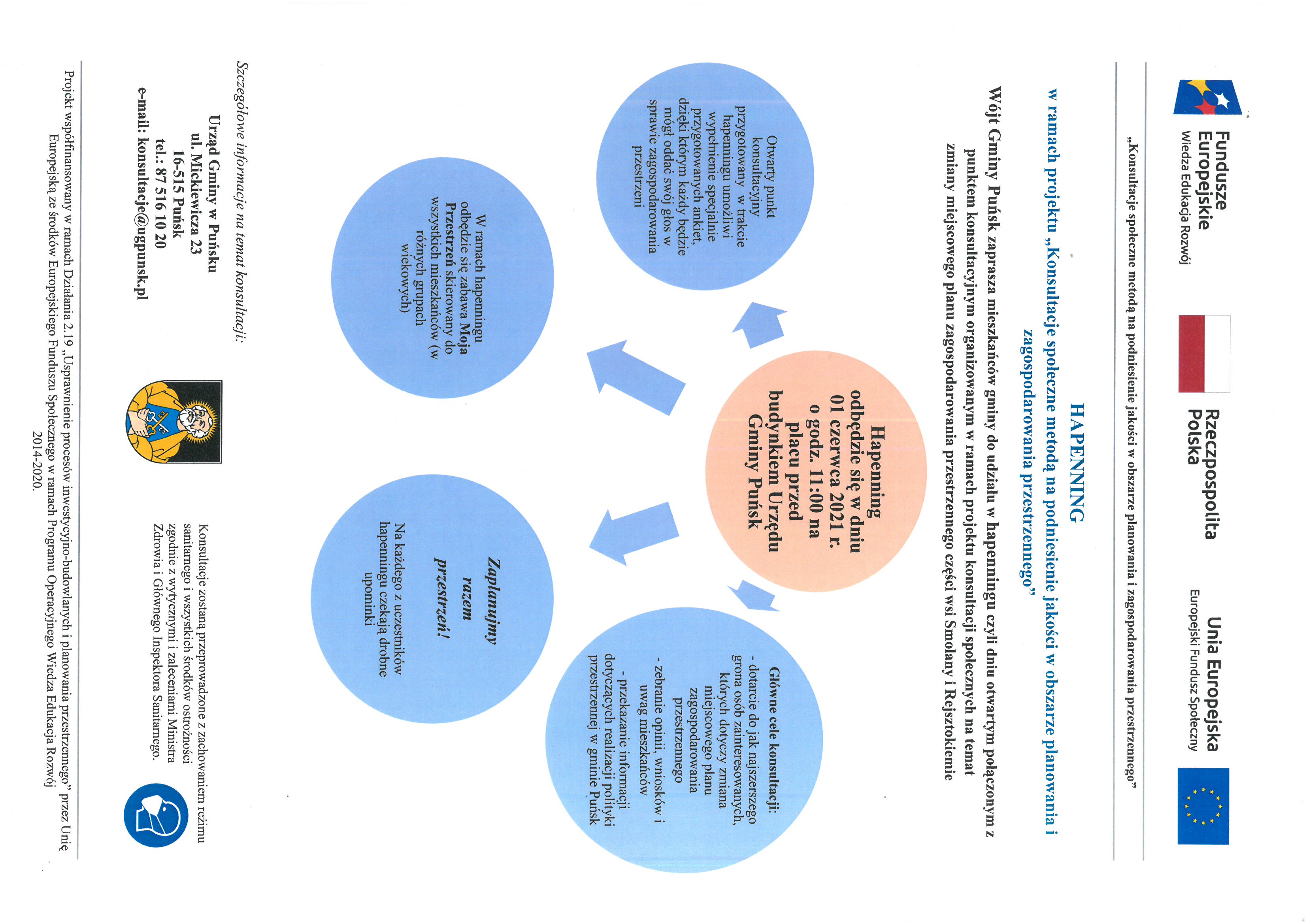 W ramach projektu „konsultacje społeczne metodą podniesienia jakości w obszarze planowania i zagospodarowania przestrzennego”, wójt gminy organizuje we wtorek, 1 czerwca hapenning dla mieszkańców gminy. Impreza rozpocznie się o godz. 11.00 na placu przed budynkiem Urzędu Gminy.