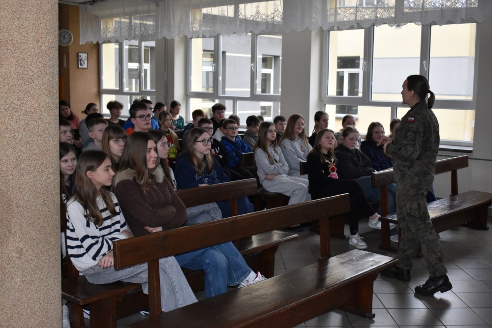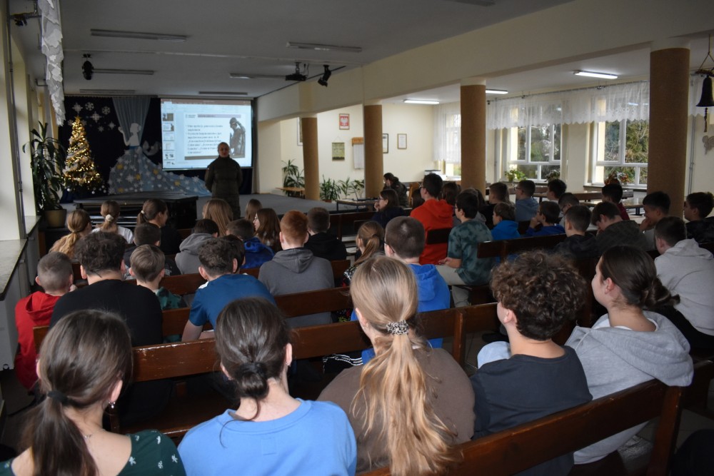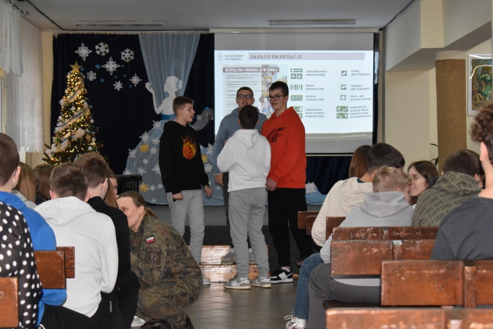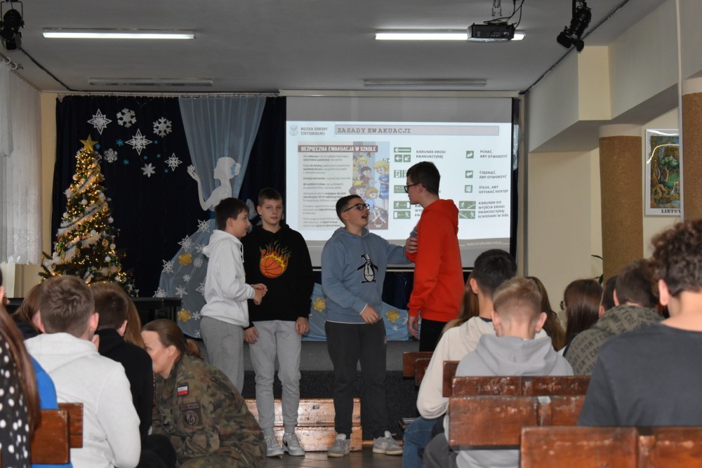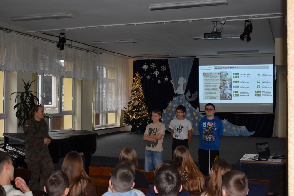 Uczniowie poznali sposoby wzywania i udzielania pierwszej pomocy, zasady alarmowania o grożącym niebezpieczeÅ„stwie i jak przeprowadzić ewakuacjÄ™. Na spotkaniu omówiono nie tylko zasady zachowania w codziennych sytuacjach, ale również sposoby reagowania w czasie zagrożenia i w sytuacjach kryzysowych.