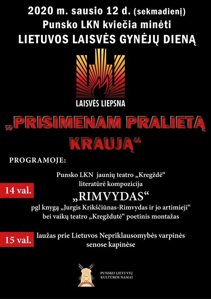 Dom Kultury Litewskiej w Puńsku zaprasza na obchody Dnia Obrońców Wolności Litwy. Impreza, pn. „Przypomnijmy przelaną krew”, odbędzie się w niedzielę, 12 stycznia br.