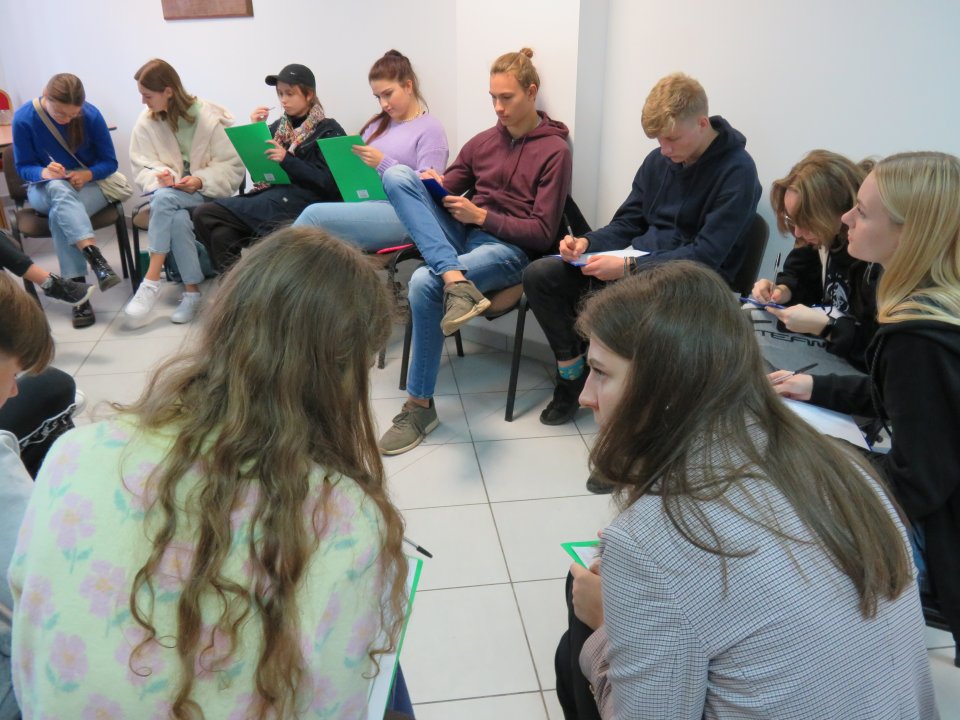 Kreatywność i osobowość twórcza - rozumienie kreatywności i osobowości twórczej, typologia osobowości, procesy twórcze, twórczość eksploracyjna, twórczość kombinatoryczna, twórczość transformacyjna. Ponadto w ramach warsztatów młodzież zwiedziła Muzeum w Starej Plebanii, jako przykład inspiracji do kreatywnego myślenia oraz uczestniczyła w zajęciach twórczo-rękodzielniczych w pracowni rękodzielniczej „Šimtavirvis“ w Puńsku.