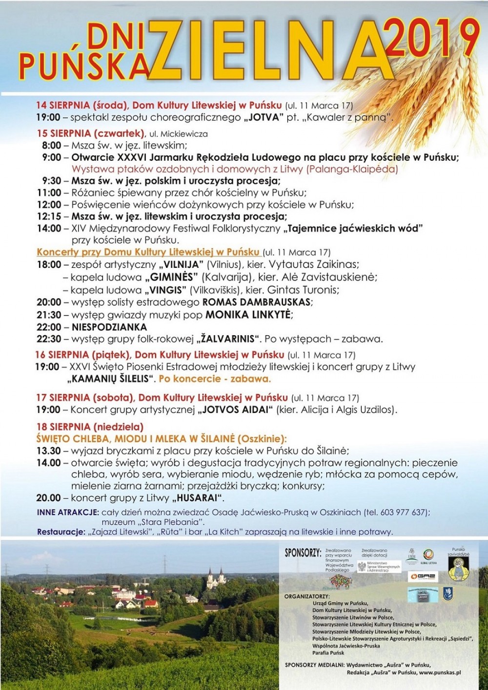 W Puńsku Dni tej miejscowości połączone są ponadto ze Świętem Chleba, Mleka i Miodu, które w tym roku odbędzie się w niedzielę, 18 sierpnia br., w Centrum Wypoczynku i Rozrywki „Šilainė” k.Puńska.