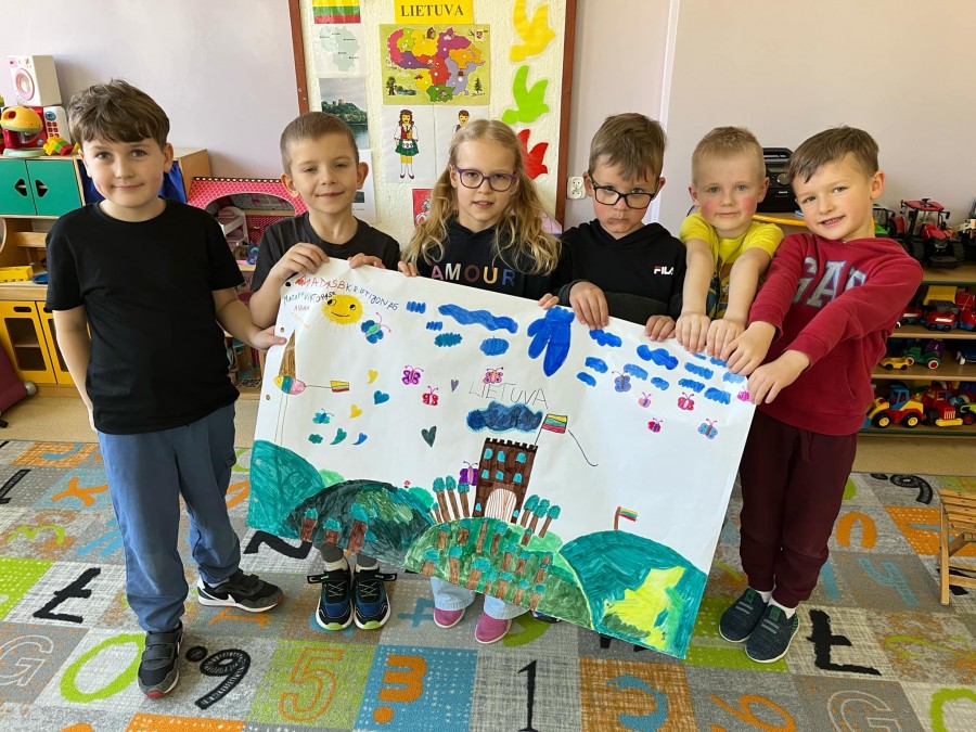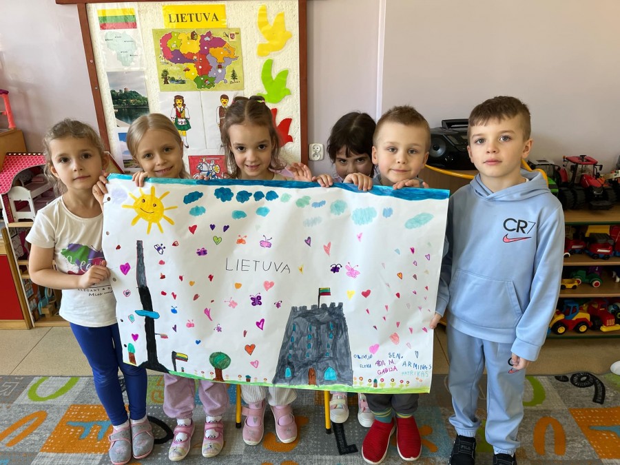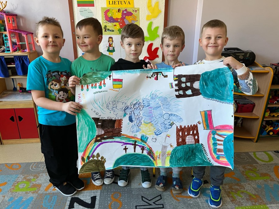 Najpierw przedszkolaki z zapaÅ‚em rysowaÅ‚y, malowaÅ‚y różne plakaty poÅ›wiÄ™cone niepodlegÅ‚oÅ›ci, historii Litwy. NaprawdÄ™ powstaÅ‚y piÄ™kne dzieÅ‚a.