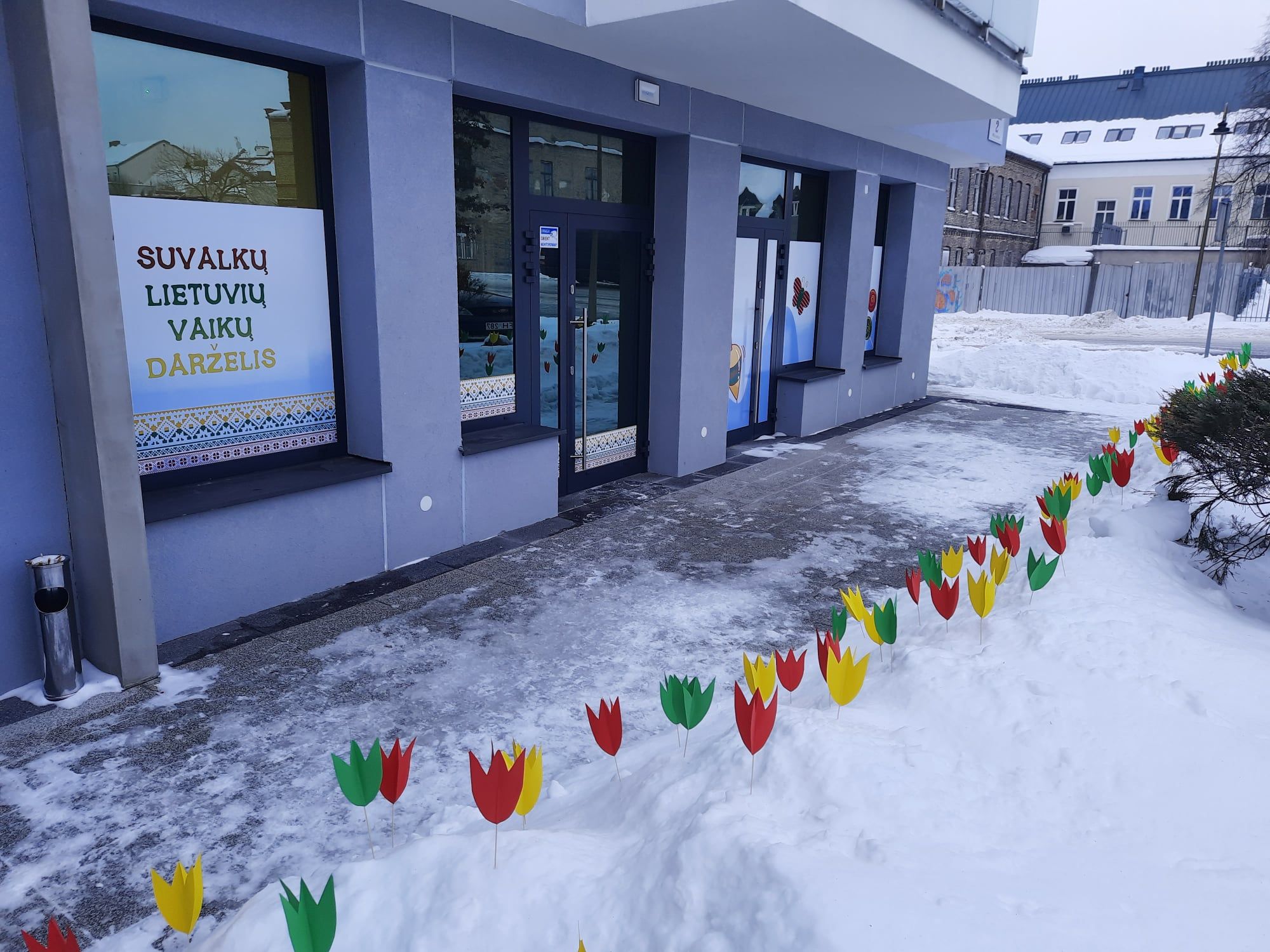 W Suwałkach przedszkolaki i pracownicy litewskiego przedszkola i jego okolice udekorowały barwami litewskiej flagi.