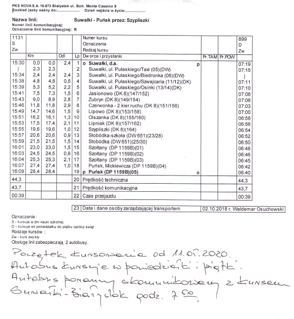 Kurs poranny będzie skomunikowany z kursem Suwaki - Białystok( odjazd z Suwałk godz.7.50.