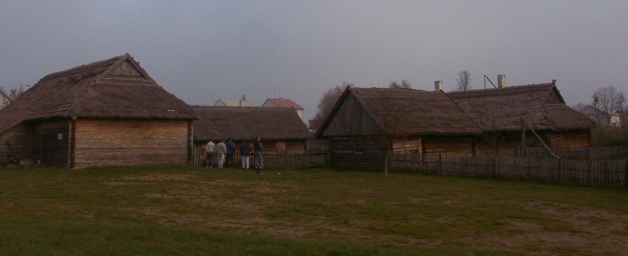 Wszystkie budynki sÄ… drewniane, zrÄ™bowe, postawione na kamieniach lekko powiÄ…zanych wapnem i cementem. Do pokrycia dachów użyto sÅ‚omy. Tuż przy ogrodzie bÅ‚yszczy lustro niewielkiego stawu.