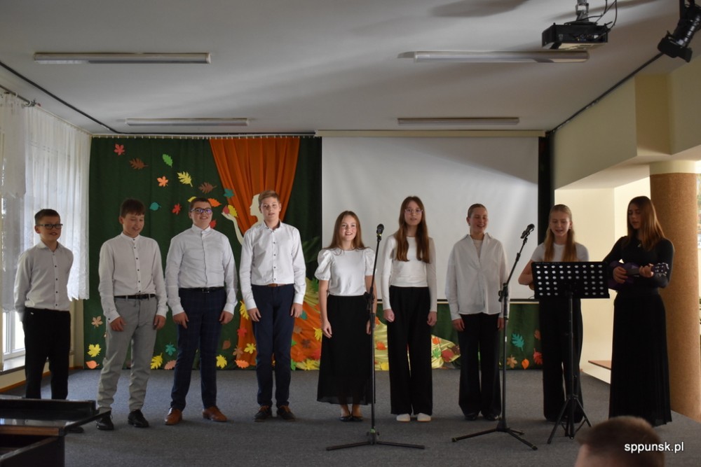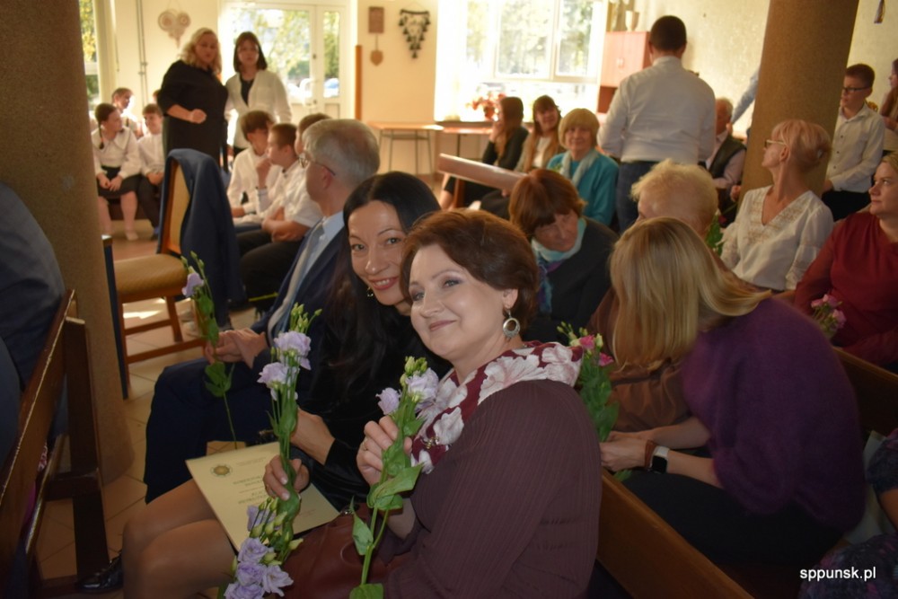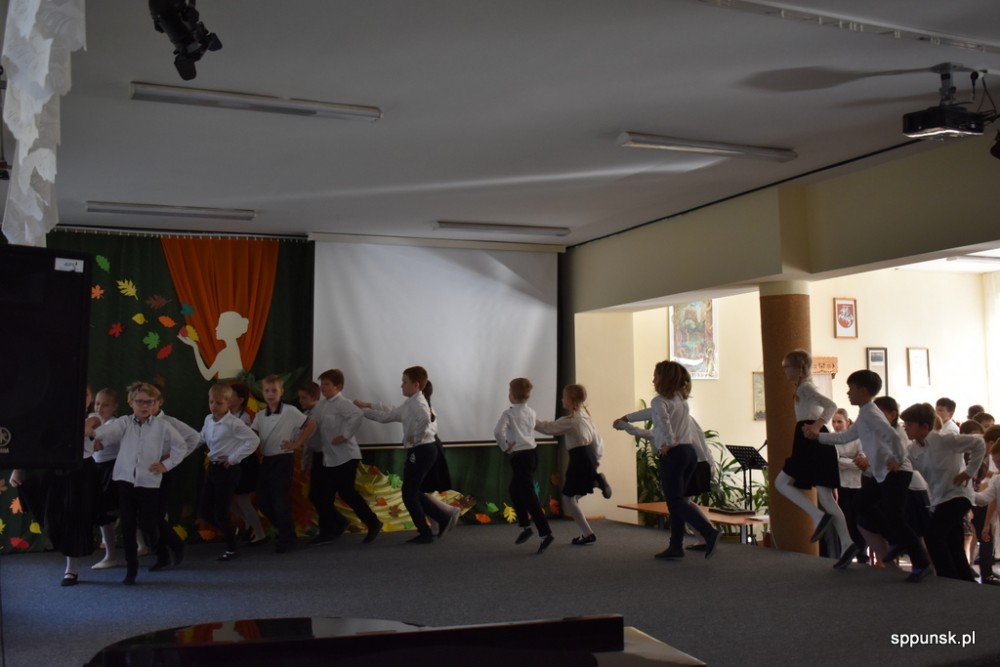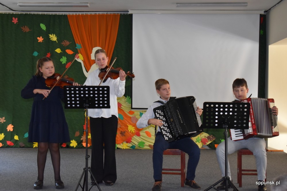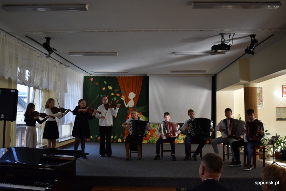 Uczniowie zauroczyli pięknym programem artystycznym oraz obdarowali nauczycieli kwiatami. Młodzież nie tylko dobrze tu się, uczy, ale i jest uzdolniona artystyczne oraz sportowo. Brzmiały dźwięki harmonii, akordeonu, skrzypiec, fortepianu. Najmłodsi zachwycili tańcem.