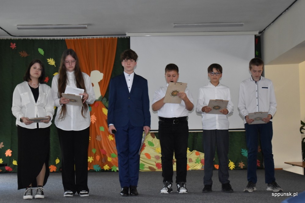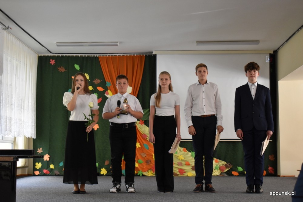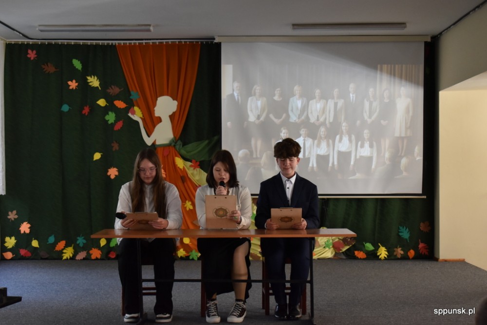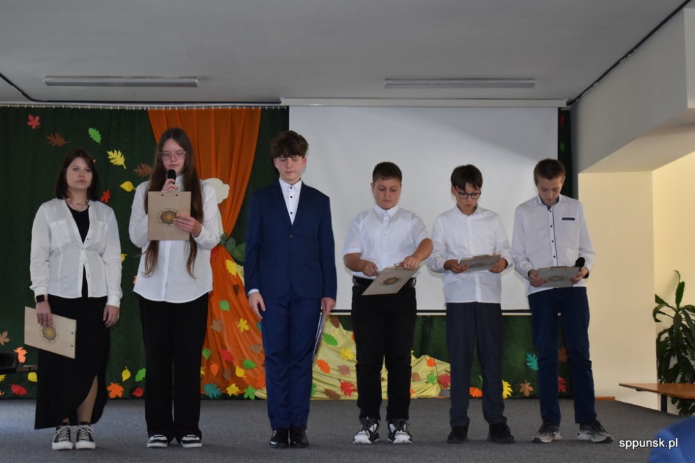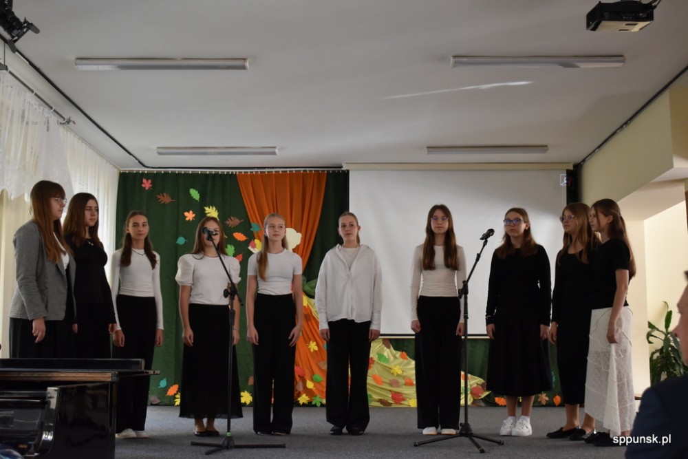 Uczniowie zauroczyli pięknym programem artystycznym oraz obdarowali nauczycieli kwiatami. Młodzież nie tylko dobrze tu się, uczy, ale i jest uzdolniona artystyczne oraz sportowo. Brzmiały dźwięki harmonii, akordeonu, skrzypiec, fortepianu. Najmłodsi zachwycili tańcem.