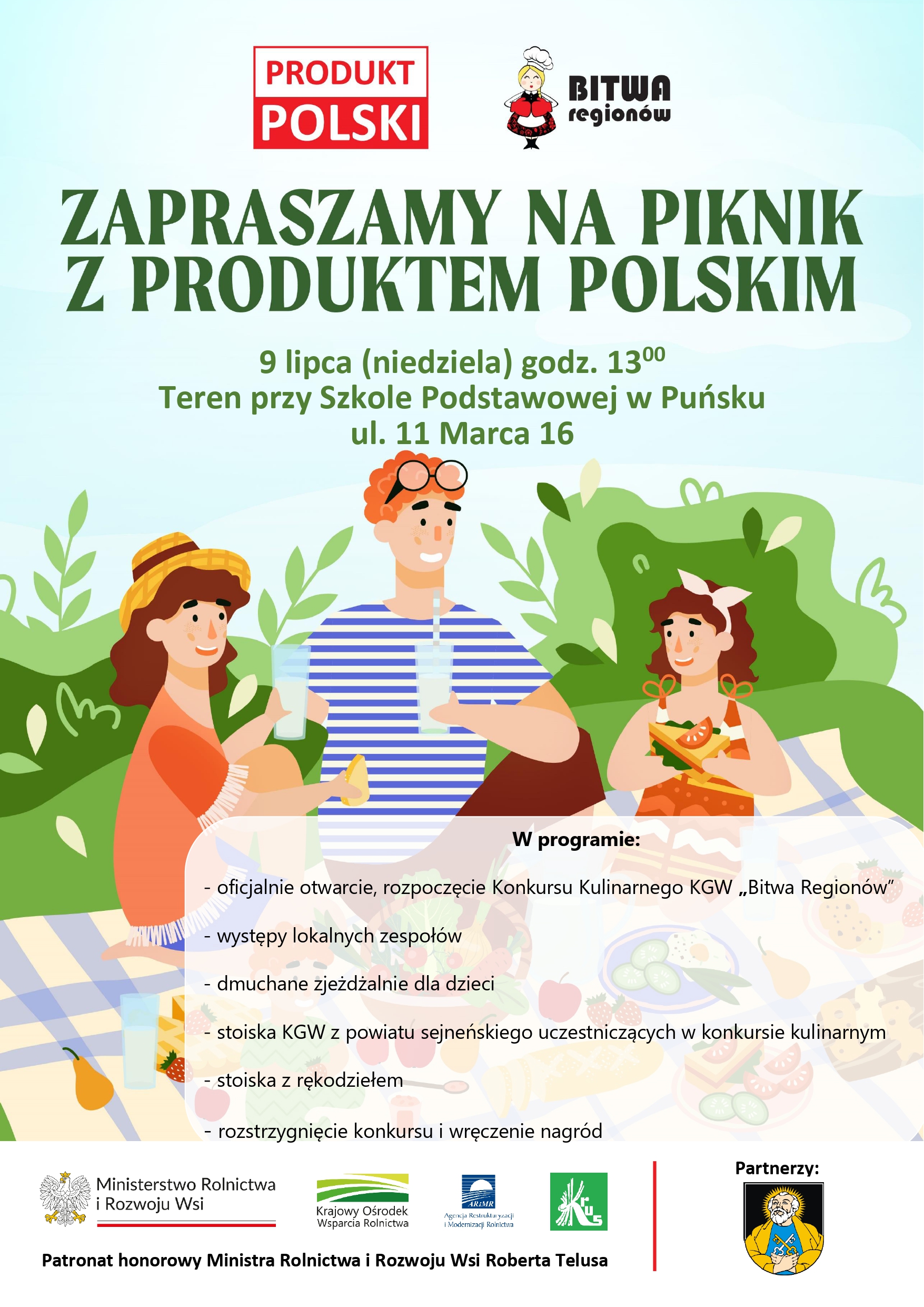 W najbliższa niedzielę, 9 lipca br. w Puńsku odbędzie się Piknik z Produktem Polskim. Jedną z części imprezy będą powiatowe eliminacje konkursu kulinarnego KGW - Bitwa Regionów.