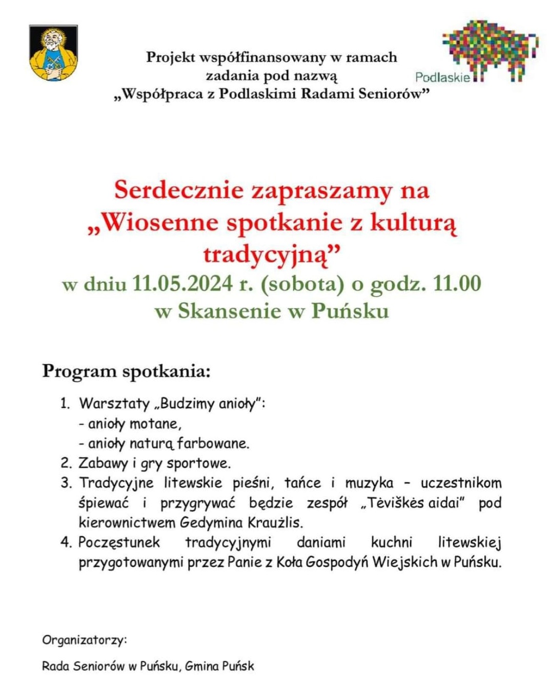 Rada Seniorów, Urząd Gminy, Koło Gospodyń Wiejskich serdecznie zapraszają na „Wiosenne spotkanie z kulturą tradycyjną”.