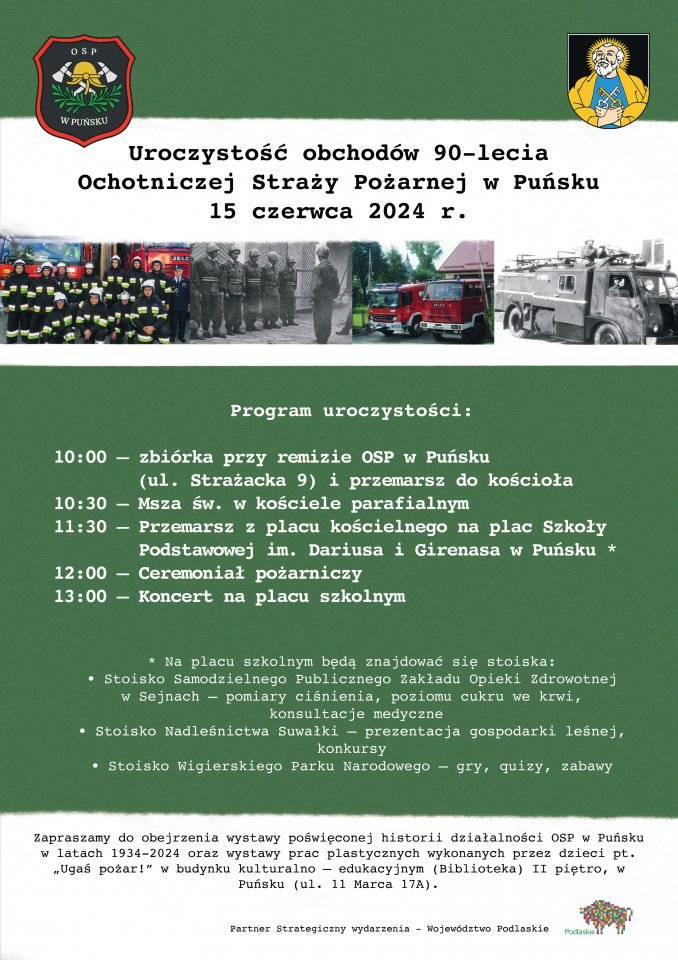 W najbliższą sobotę, 15 czerwca Ochotnicza Straż Pożarna w Puńsku obchodzić będzie jubileusz 90 lat istnienia.